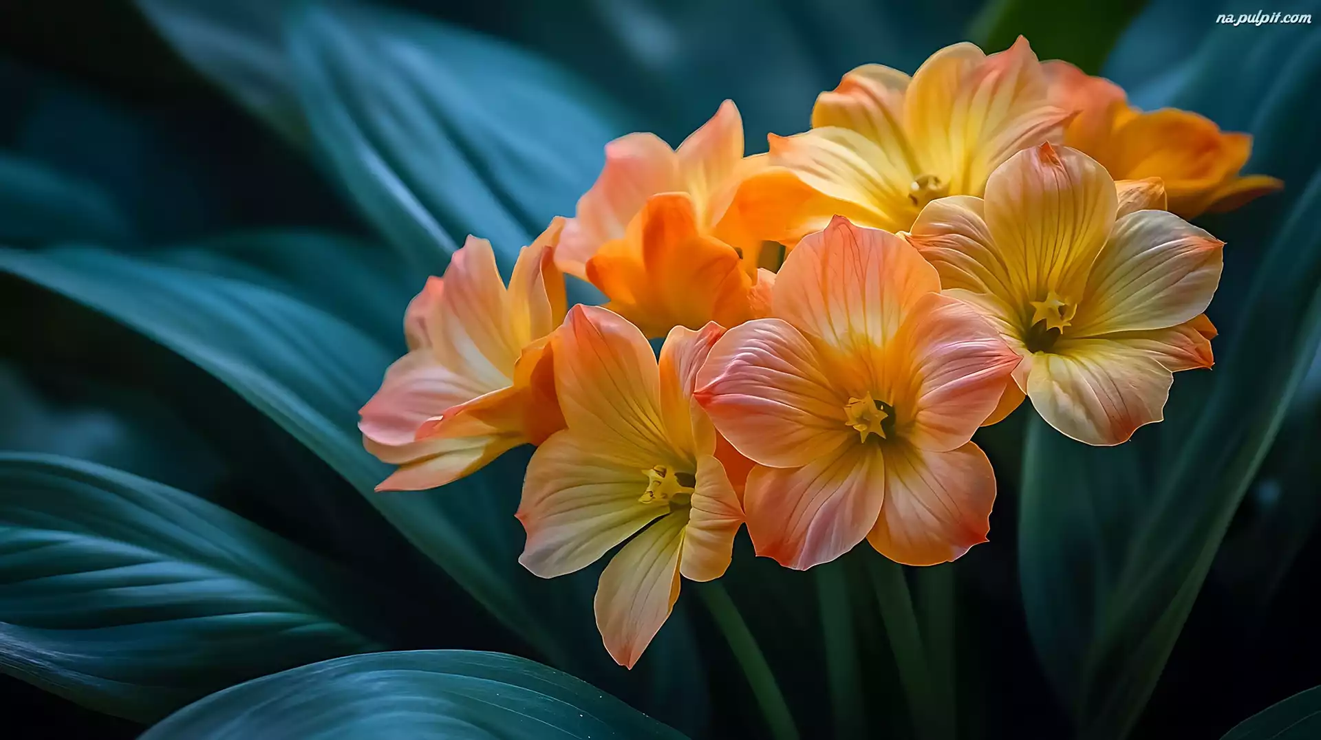 Liście, Pomarańczowe, Kwiaty, Grafika, Ciemnozielone Na Pulpit