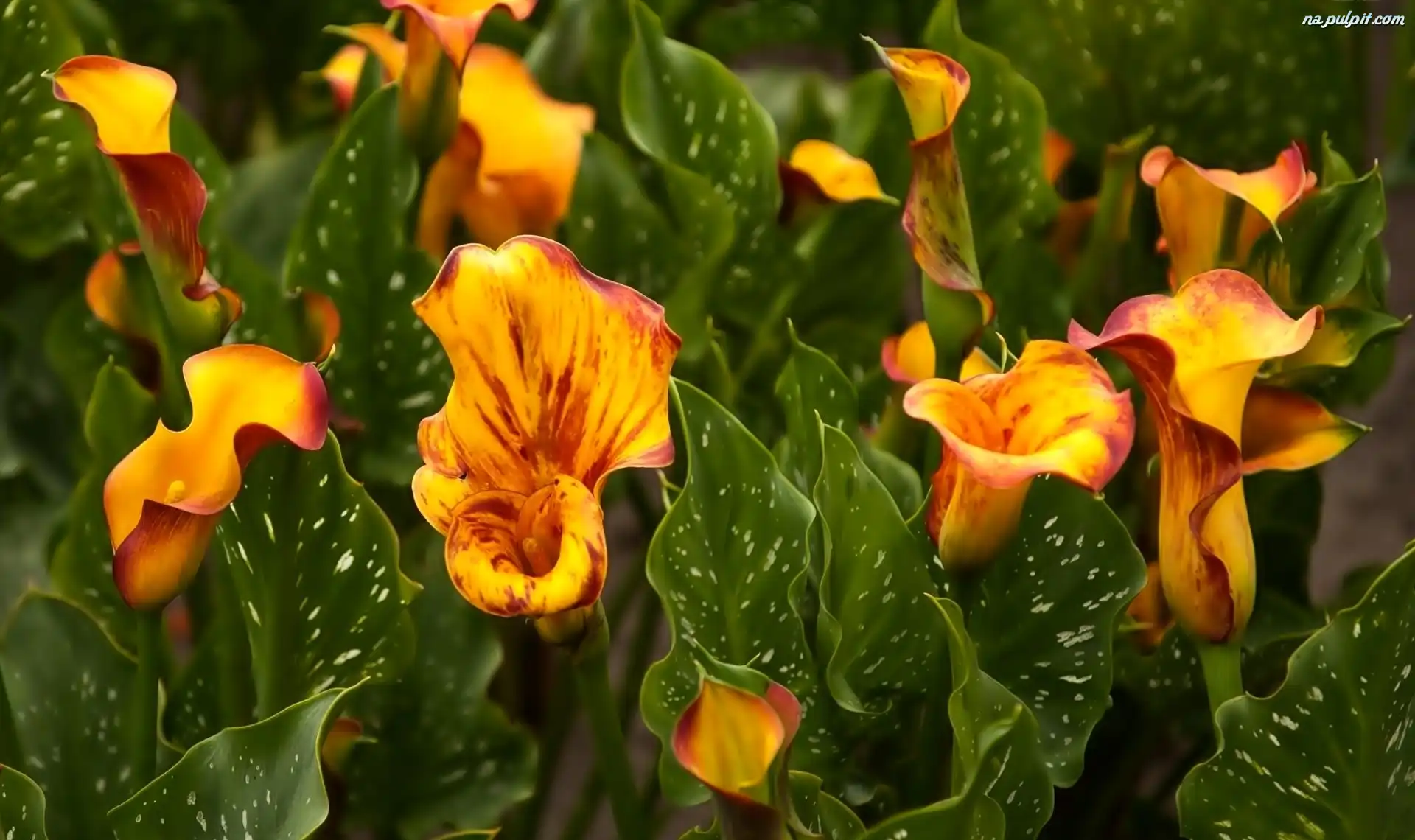Liście, Pomarańczowe, Kalie Na Pulpit