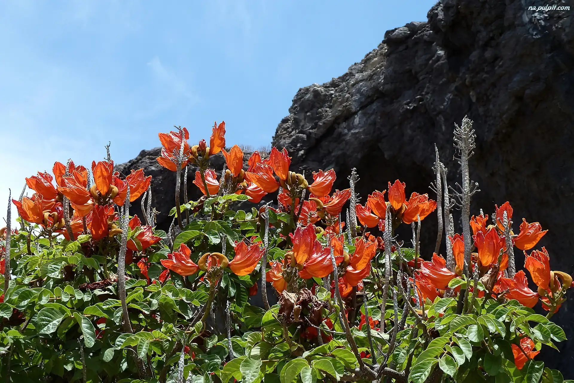 Skała, Pomarańczowe, Kwiaty Na Pulpit