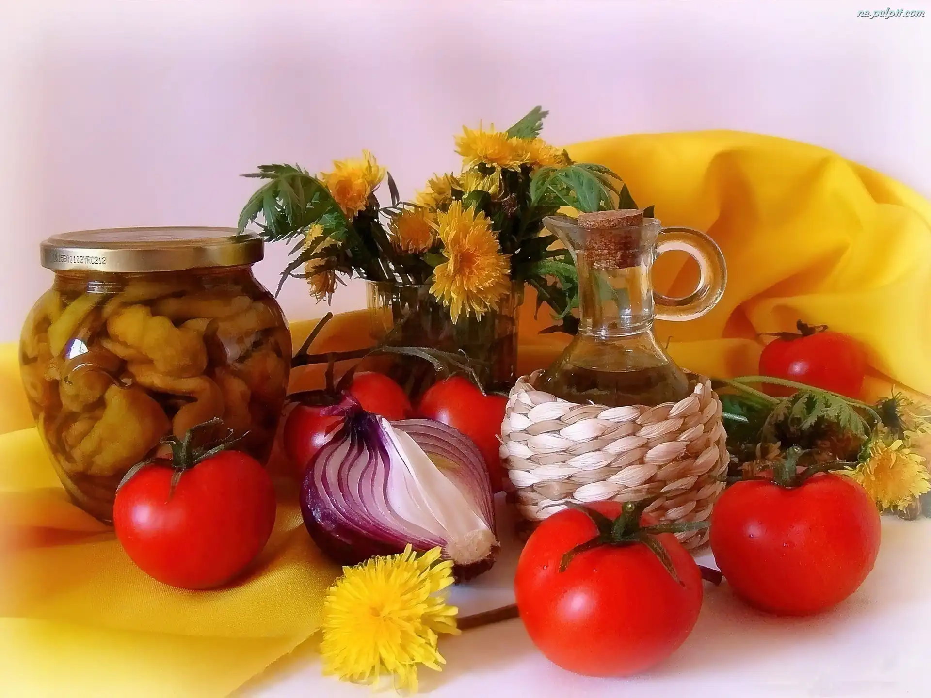 Kwiaty, Pomidory, Cebulka Na Pulpit