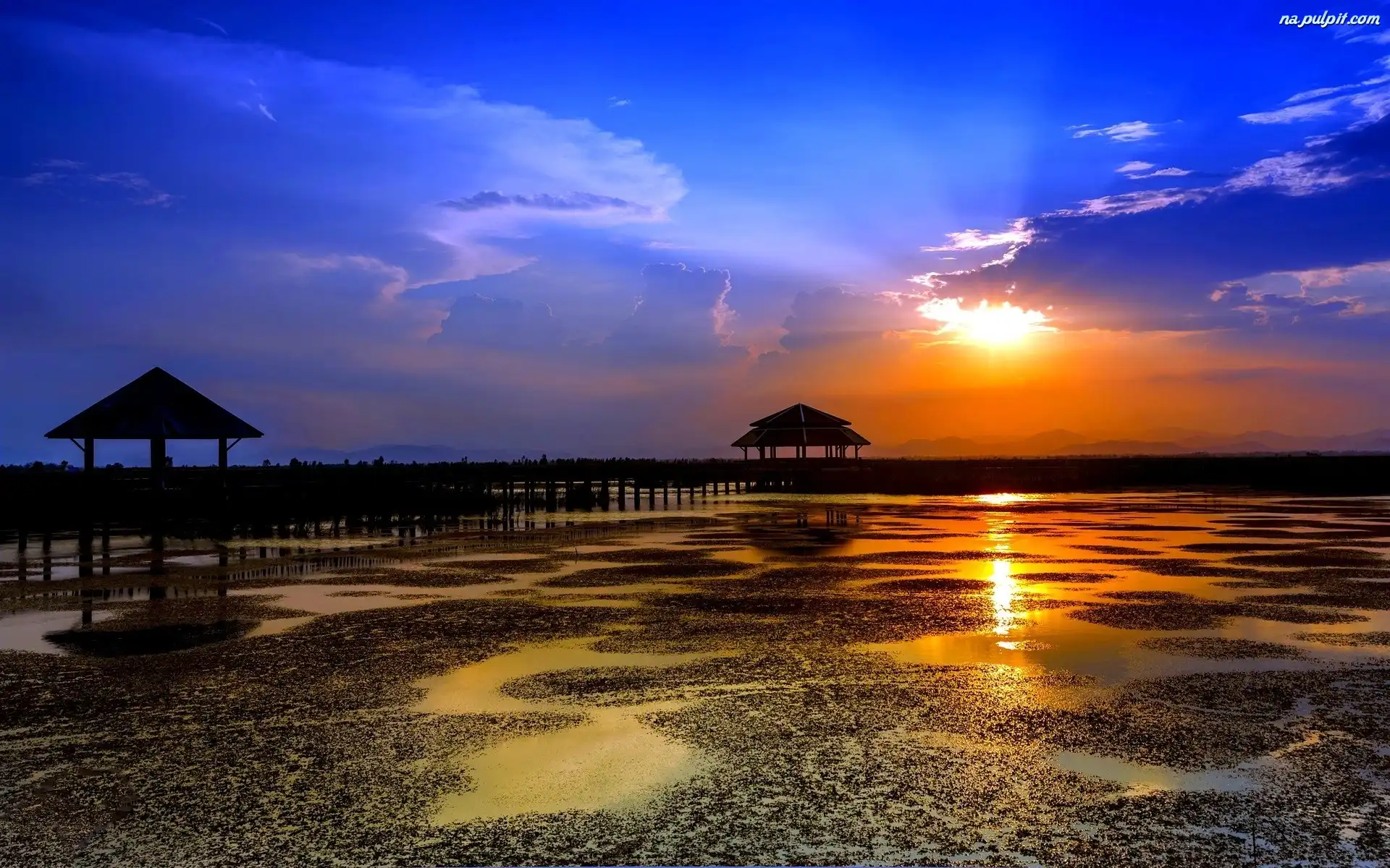 Pomost, Zachód, Rzeka, Słońca