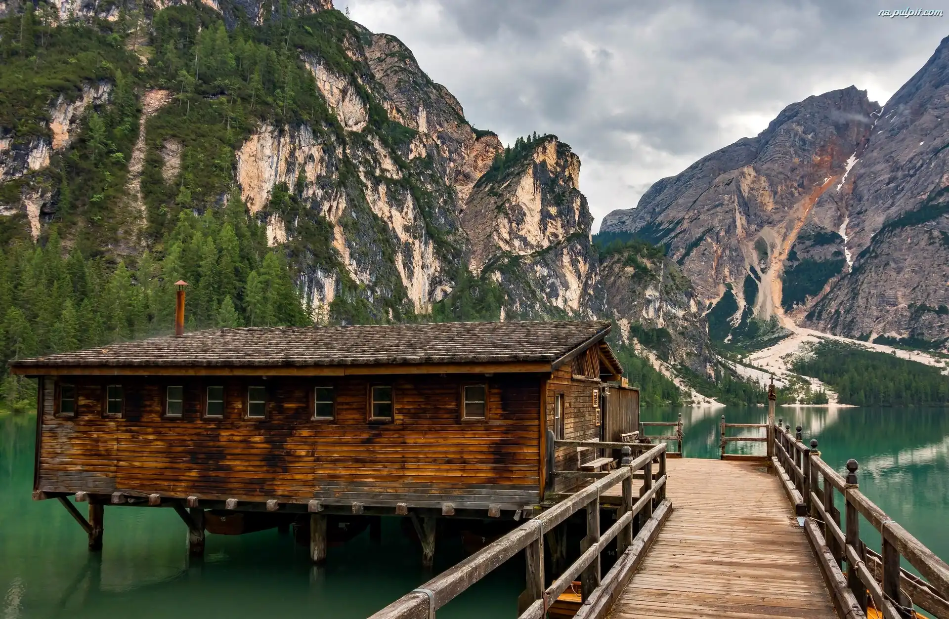 Góry, Pomost, Szopa, Dolomity, Włochy, Jezioro Pragser Wildsee Na Pulpit