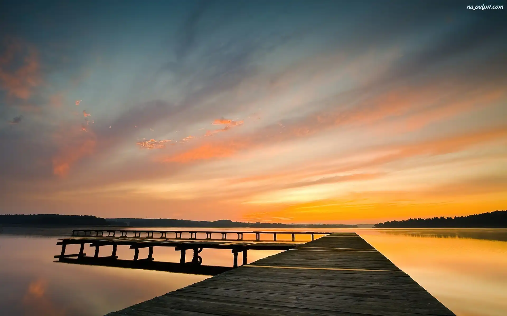 Pomost, Słońca, Zachód, Jezioro Na Pulpit