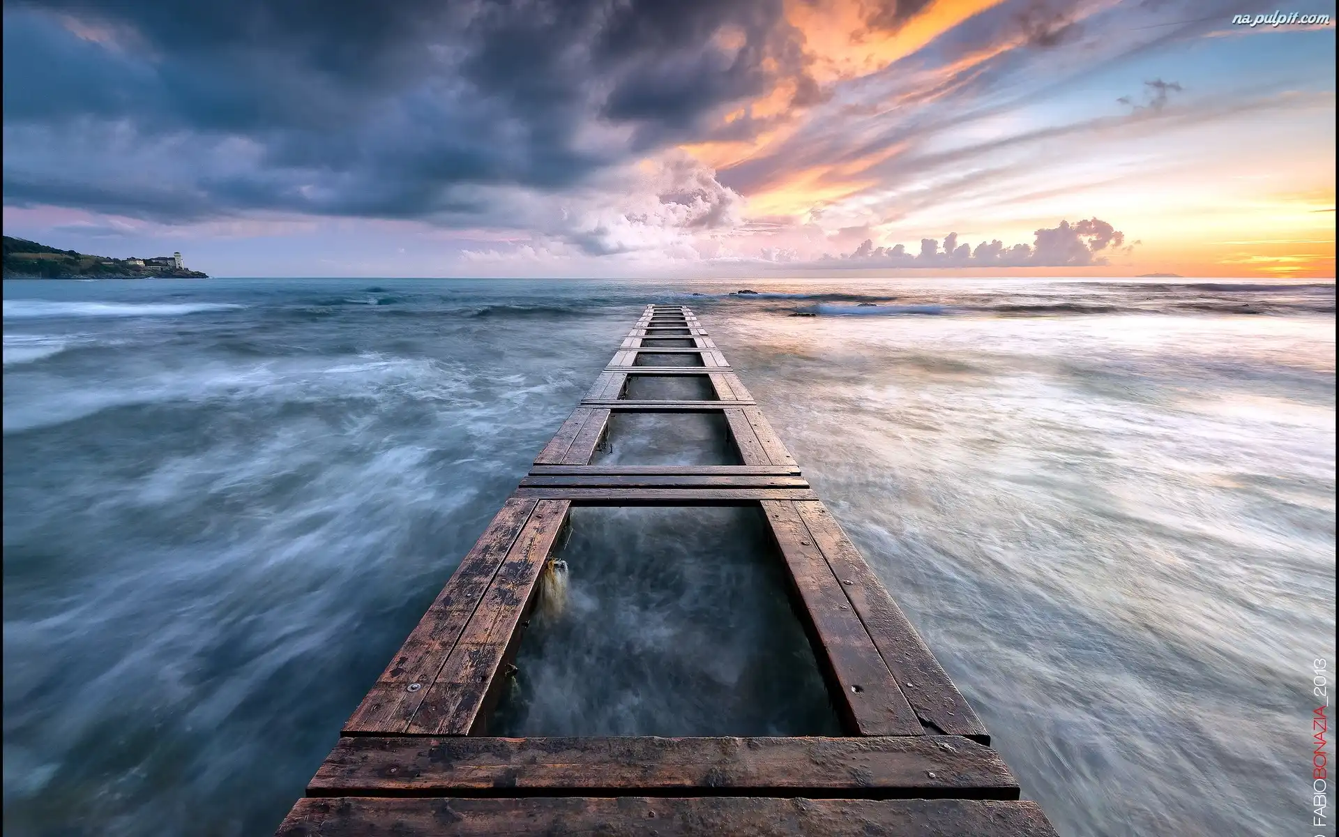 Pomost, Słońca, Zachód, Morze Na Pulpit