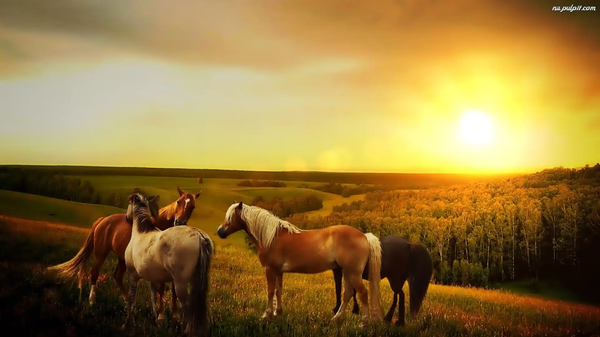 Poranek, Łąka, Konie, Las Na Pulpit