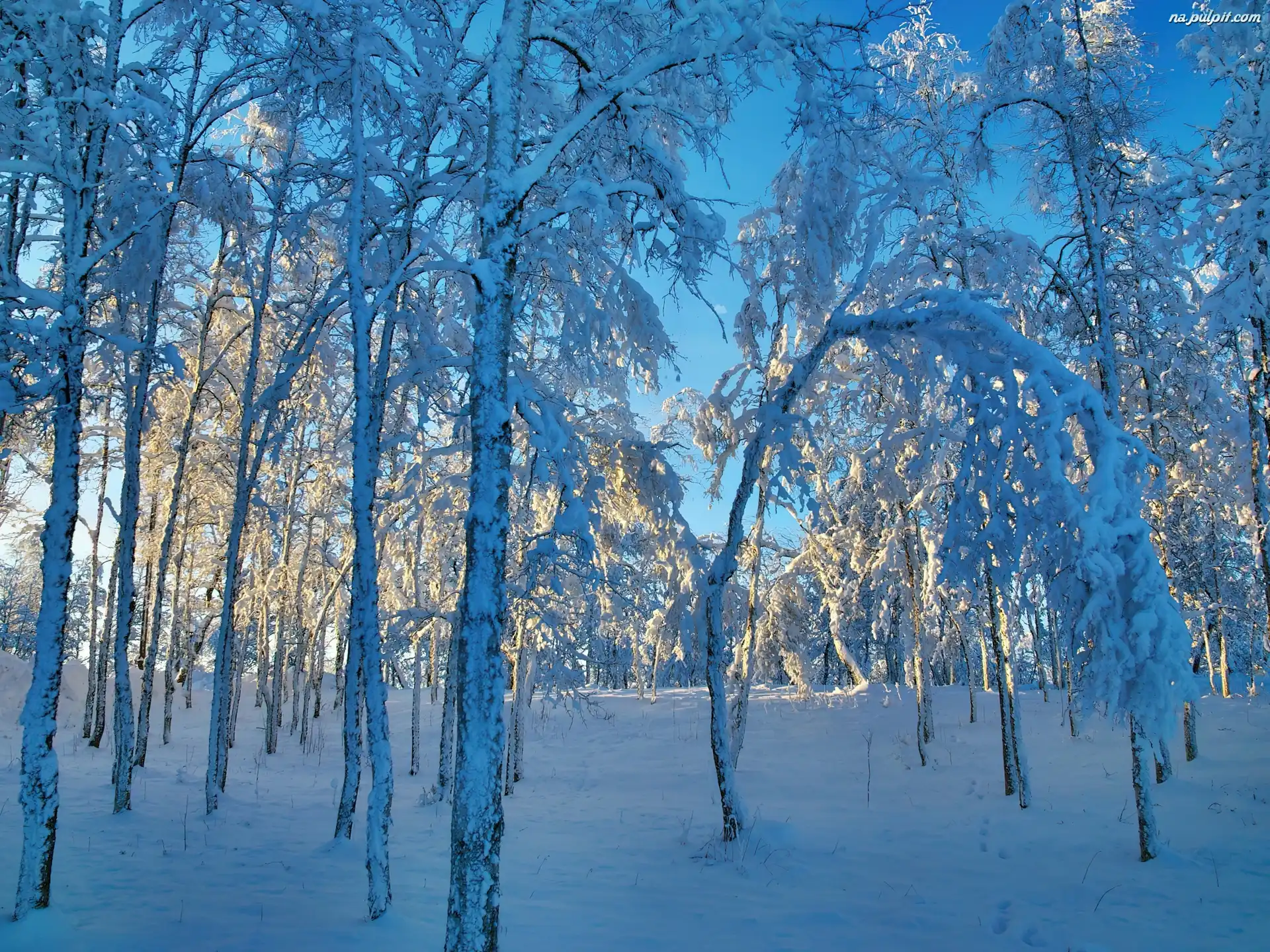 Poranek, Ośnieżone, Las, Drzewa Na Pulpit