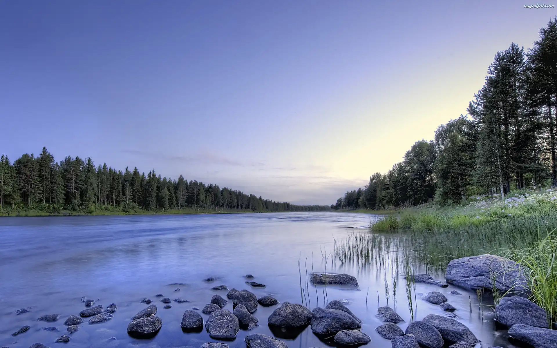 Poranek, Lasy, Rzeka, Kamienie Na Pulpit
