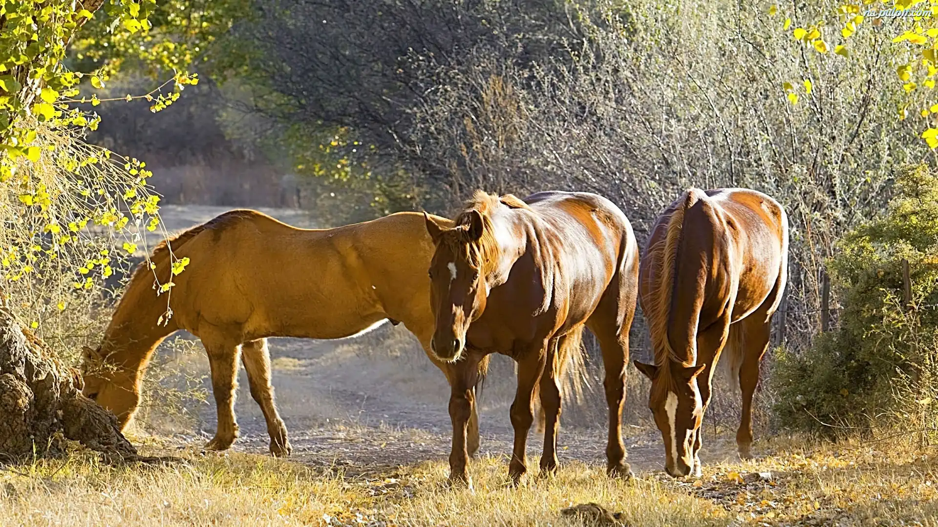 Poranek, Konie, Trzy, Las
