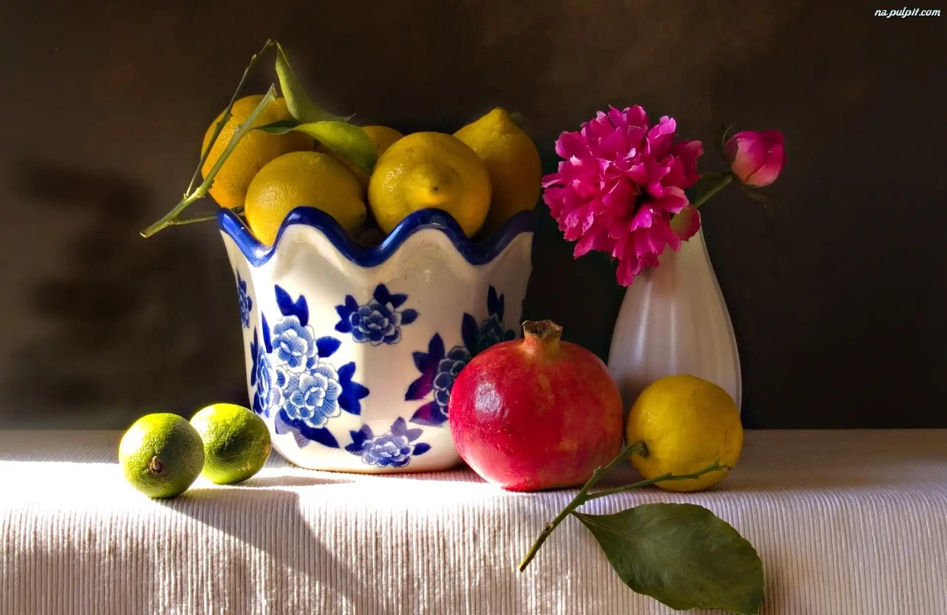 Porcelana, Cytryny, Kwiat, Granat Na Pulpit