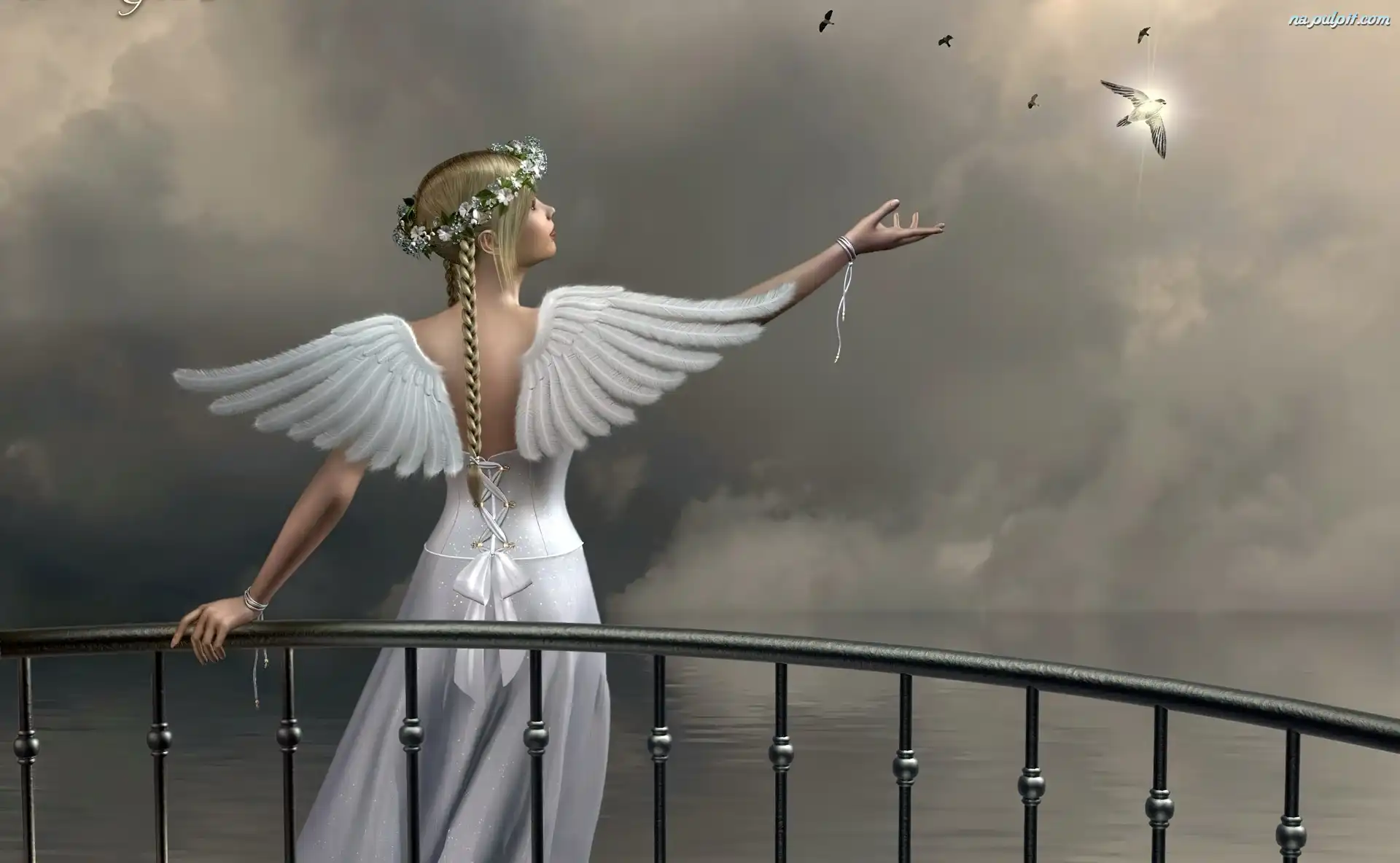 Poręcz, Woda, Anioł, Ptaki