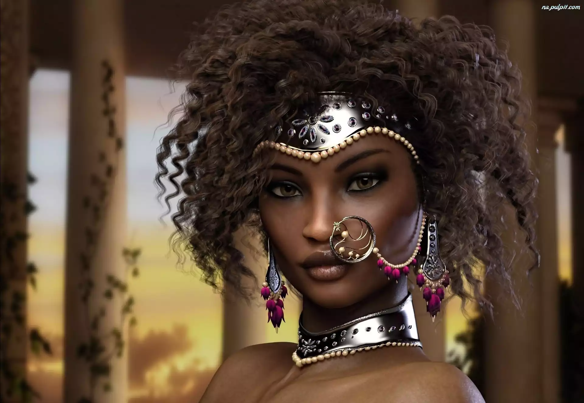 Portret, Mulatka, Kobieta, Biżuteria