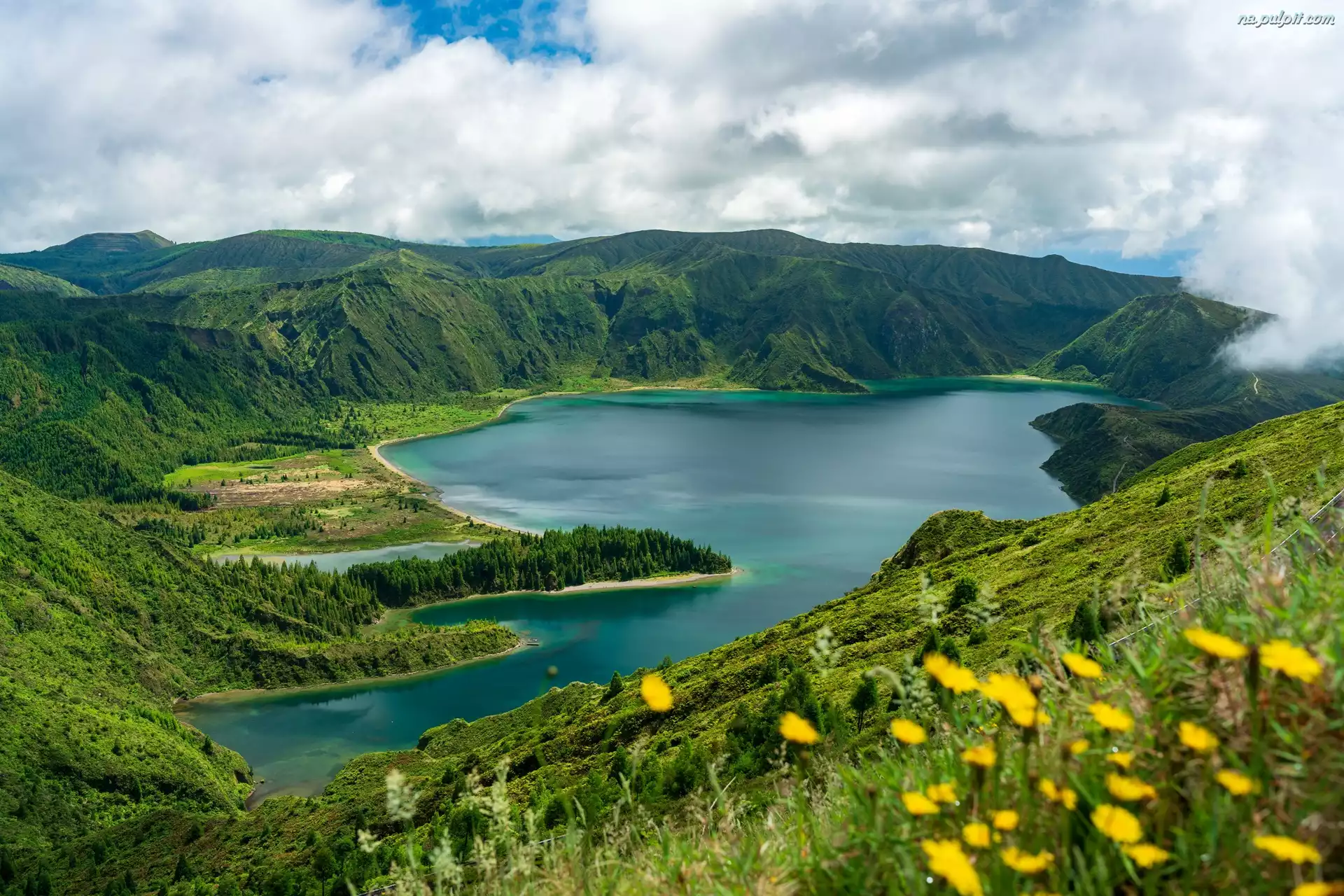 Portugalia, Sao Miguel, Azory, Jezioro, Lagoa de Fodo, Góry, Wyspa Na Pulpit