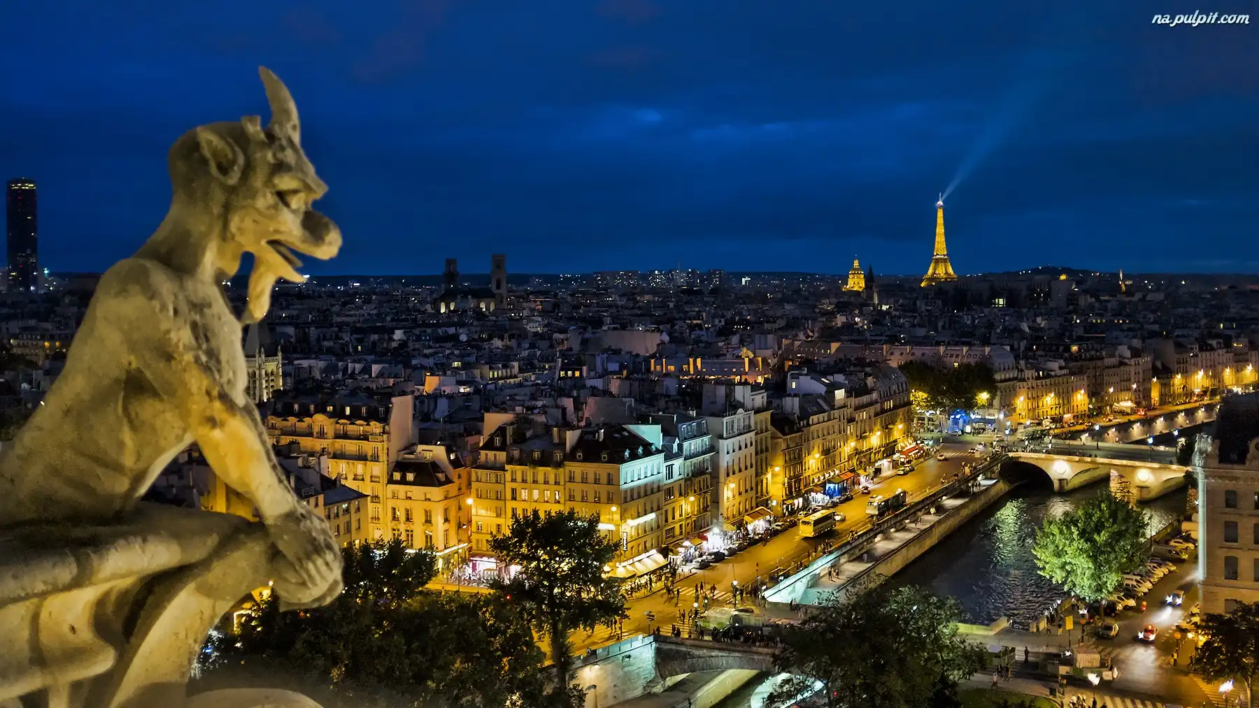 Posąg, Paryż, Panorama, Noc Na Pulpit