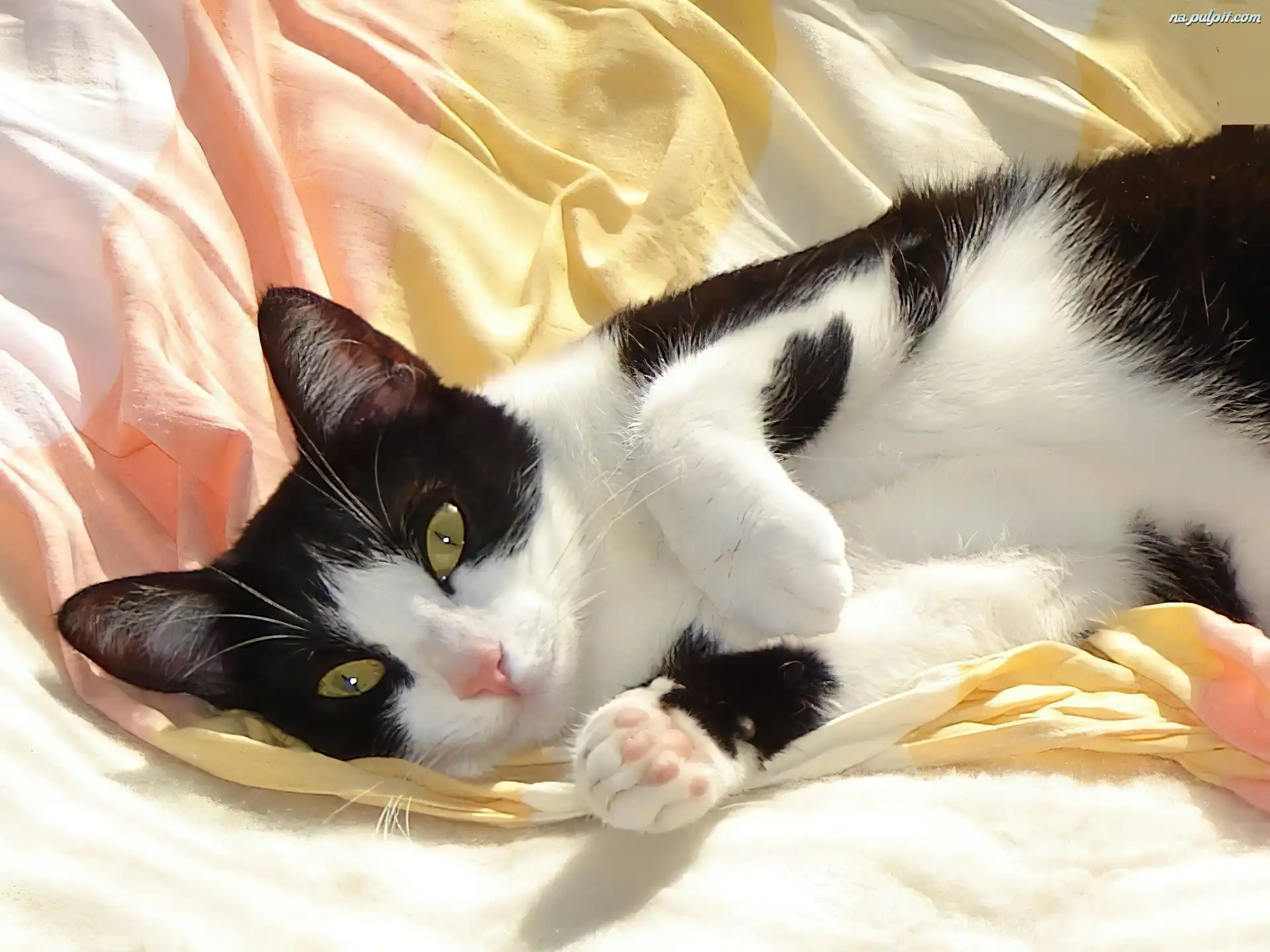 Pościel, Czarny, Biało, Kotek Na Pulpit