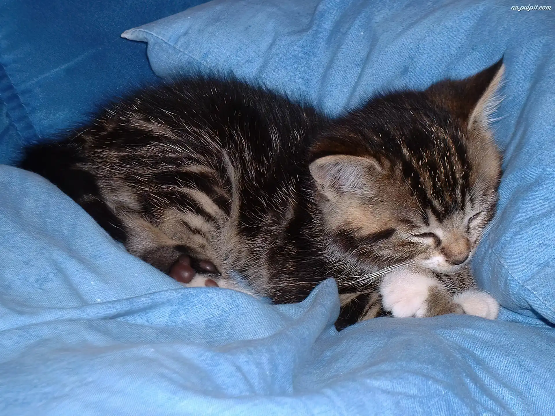 Pościel, Kotek, Mały, Niebieska Na Pulpit