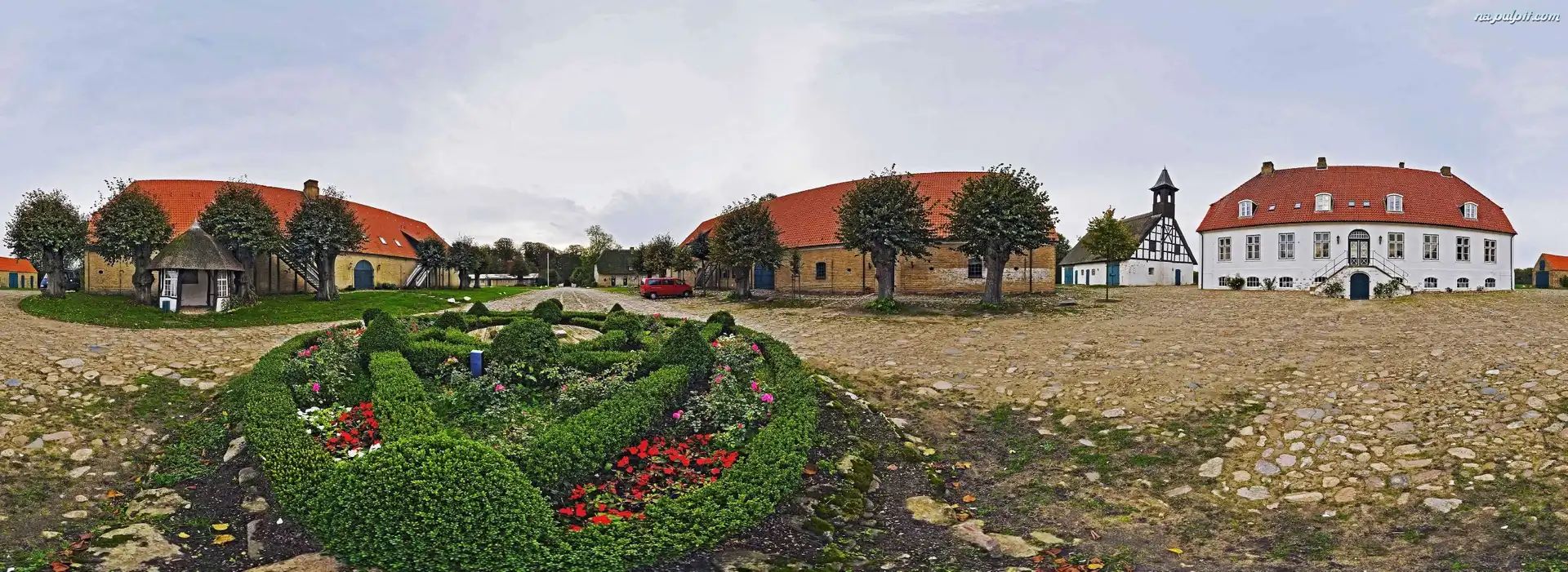 Posiadłość, Drzewa, Rośliny, Domy, Piękna, Kościół