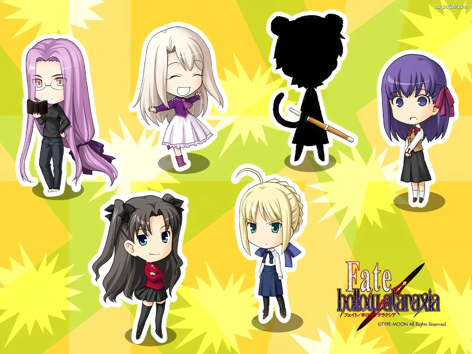 dziewczynki, postać, cień, napis, Fate Stay Night, logo Na Pulpit