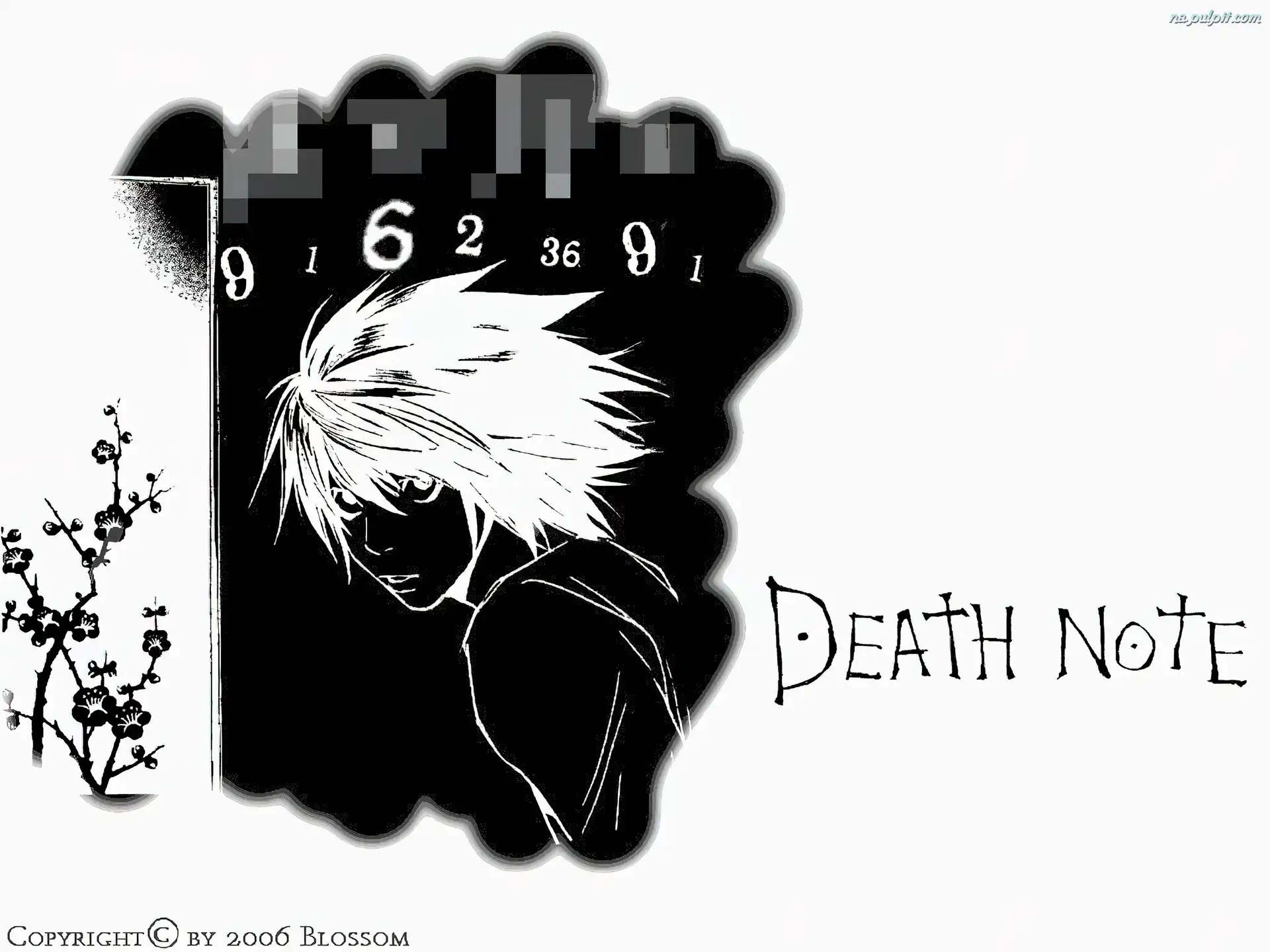 postać, cyfry, krzak, Death Note, napis Na Pulpit