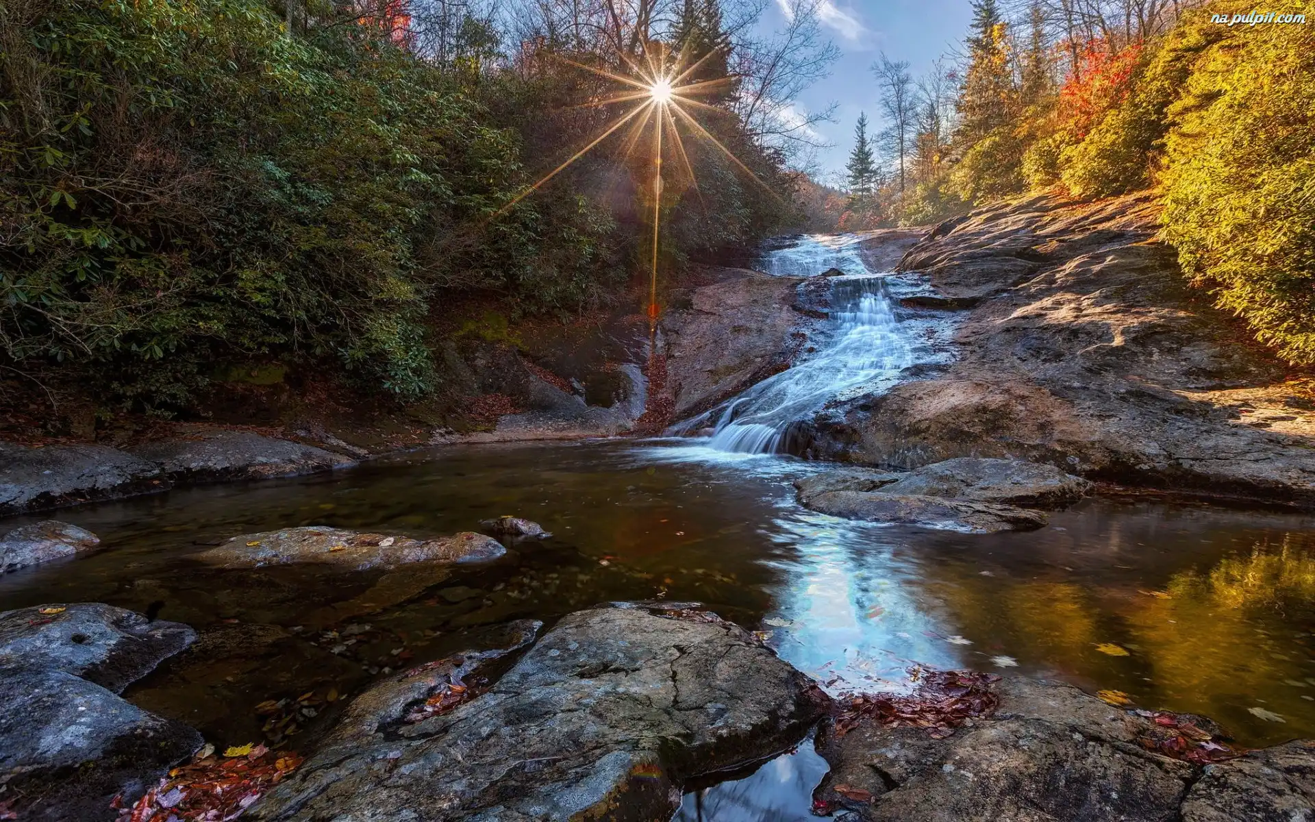 Jesień, Potok, Słońca, Las, Skały, Górski, Promienie Na Pulpit