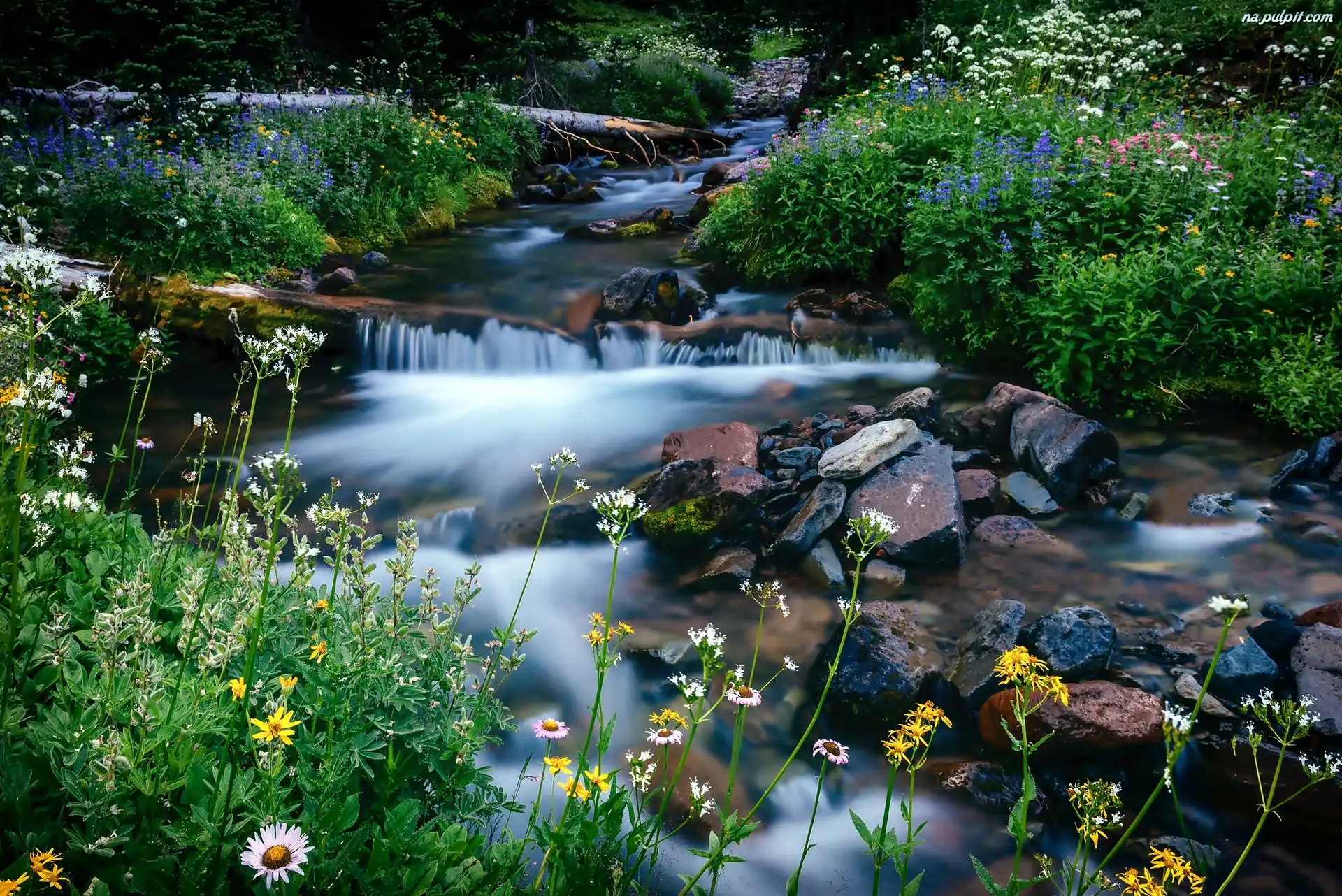 Kamienie, Potok, Kwiaty