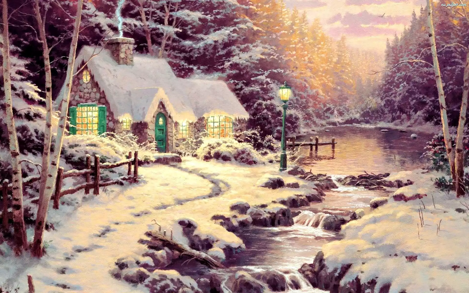 Potok, Sceneria, Zimowa, Domek Na Pulpit