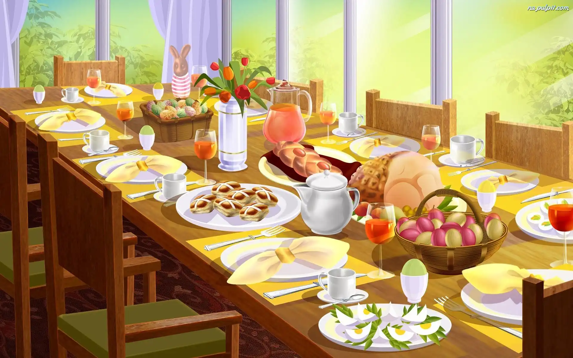 Potrawy, Śniadanie, Wielkanoc, Stół Na Pulpit