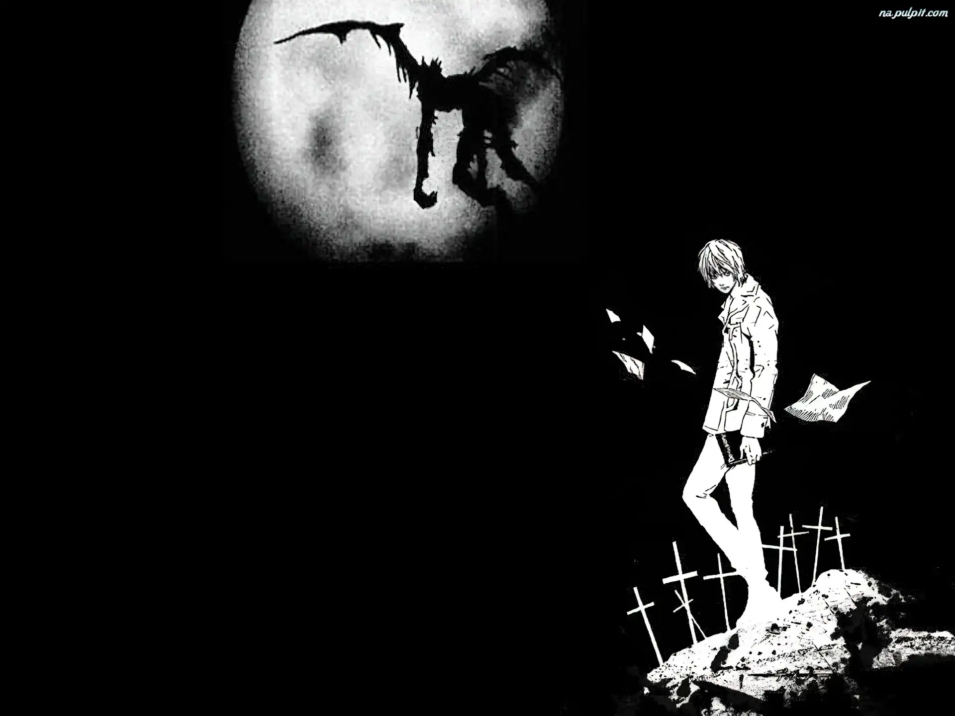ciemno, potwór, krzyże, księżyc, Death Note, kartki Na Pulpit