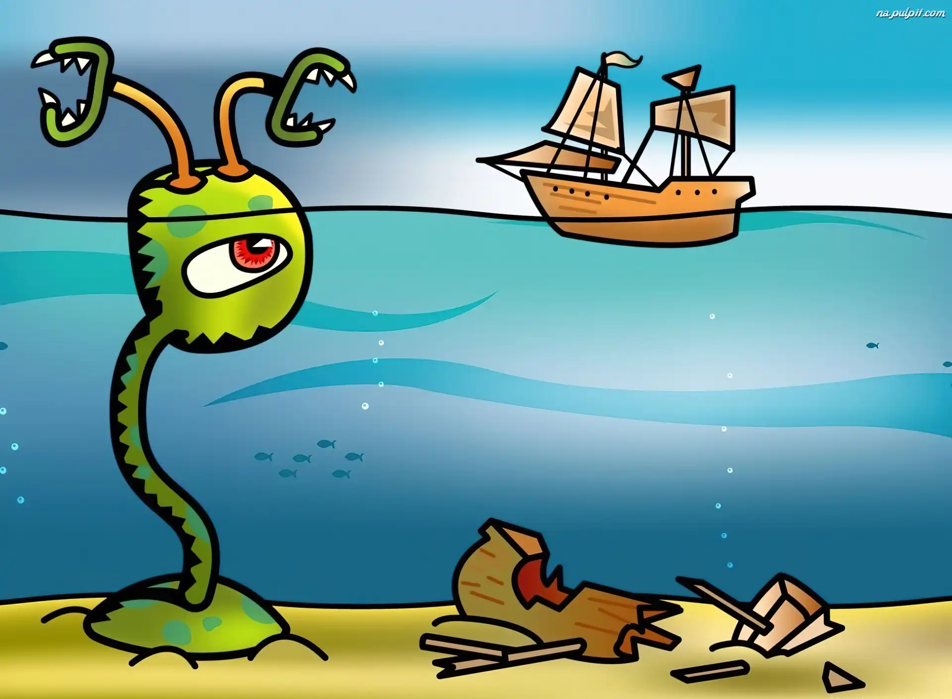 Potwór, Morze, Statek, Wysepka Na Pulpit