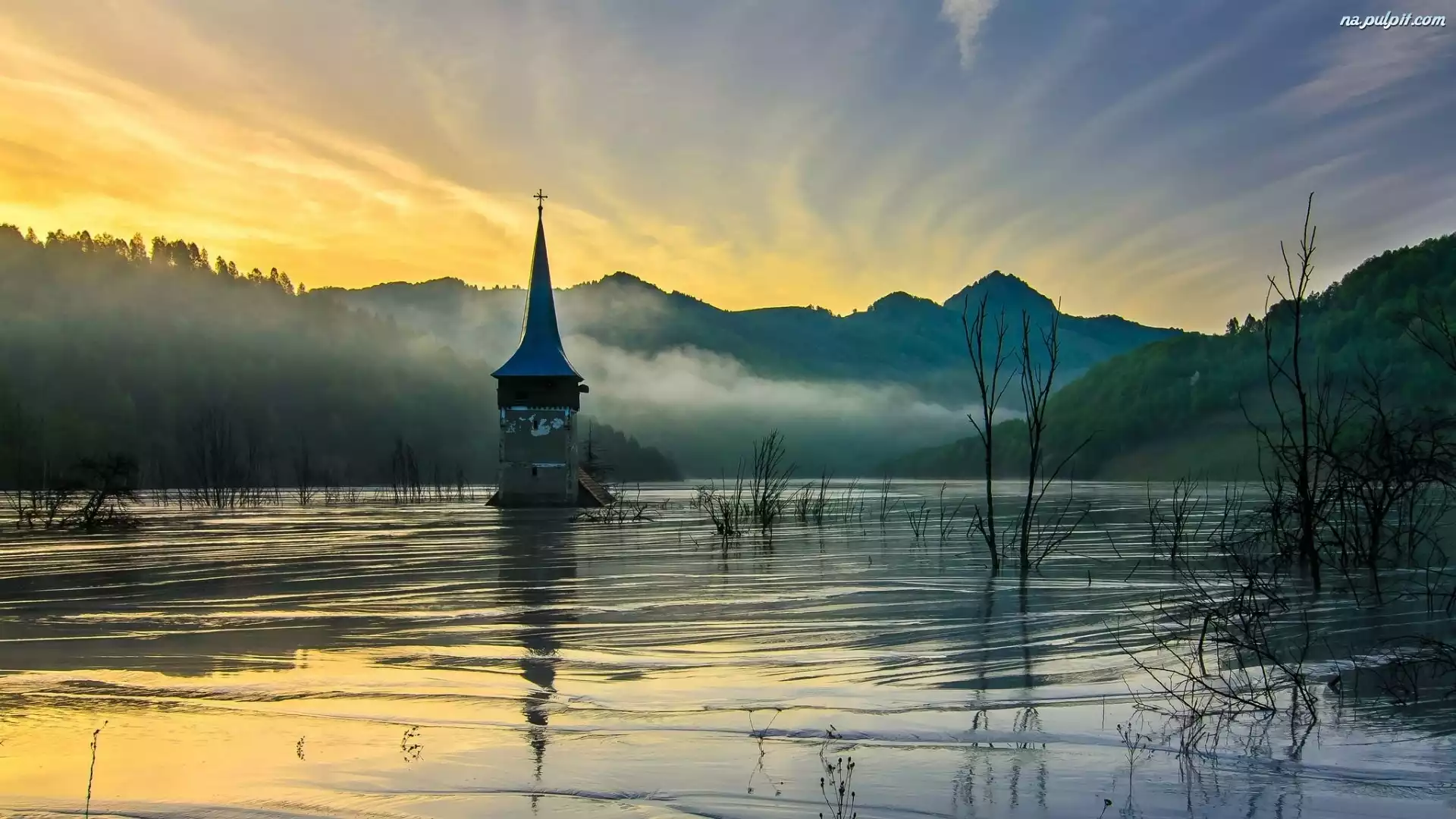 Powódź, Mgła, Góry, Kościół, Świt