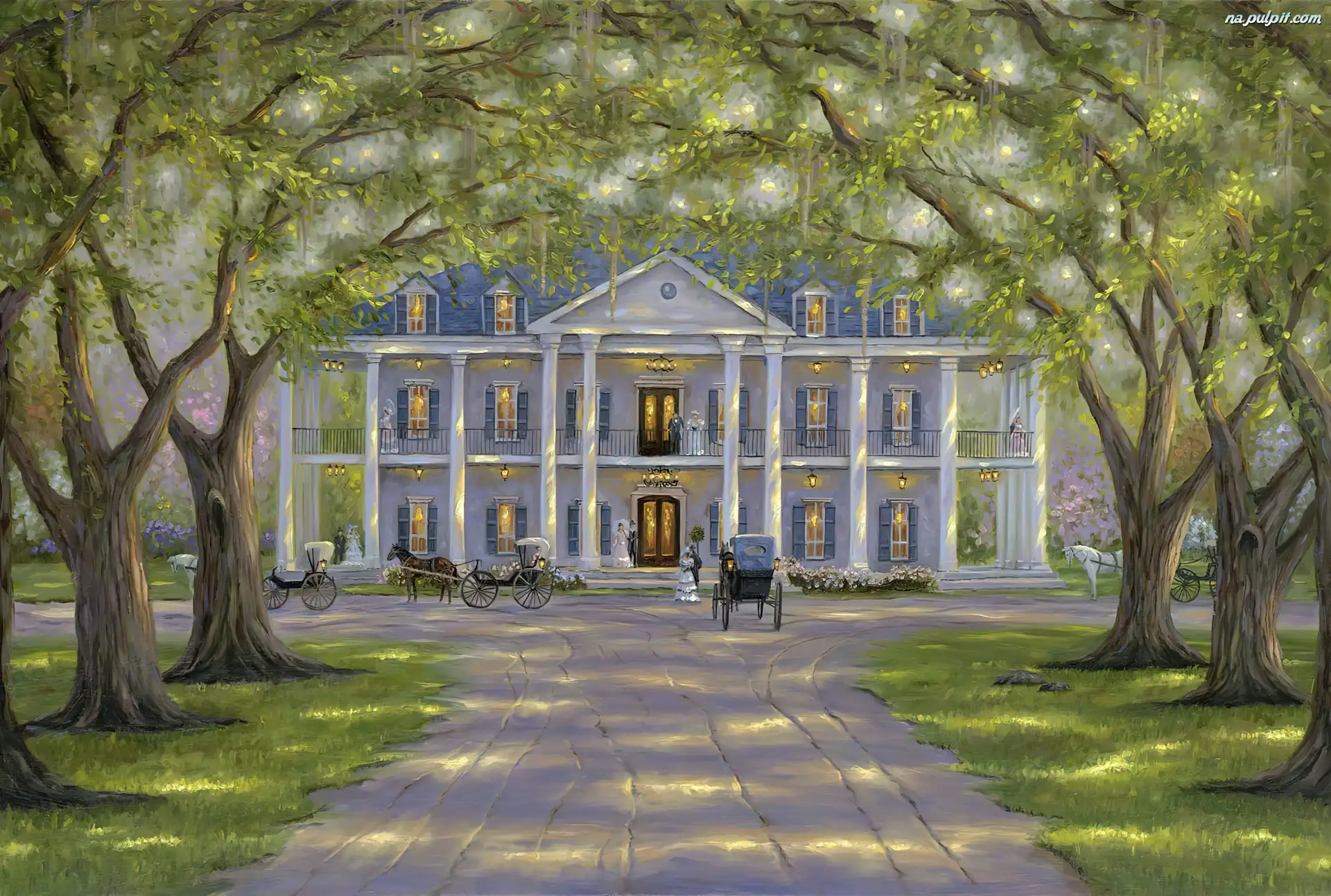 Powozy, Dworek, Robert Finale, Obraz, Drzewa Na Pulpit