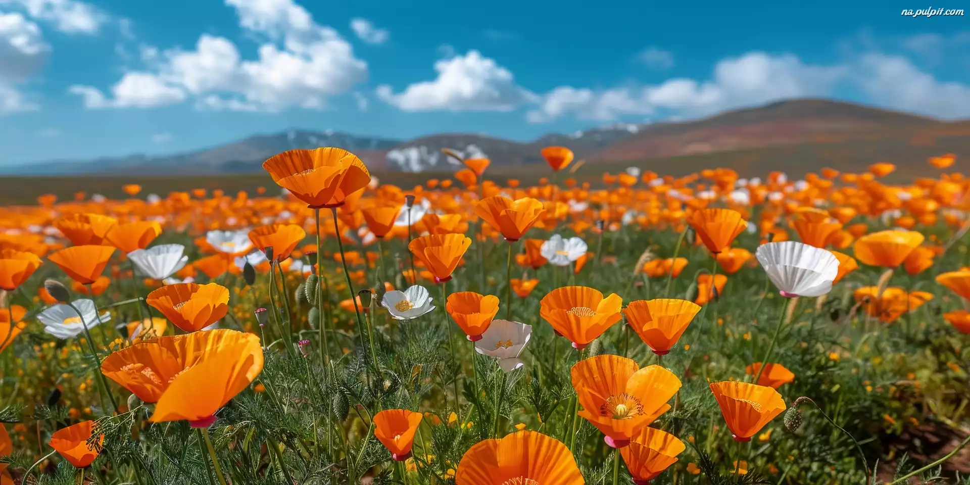 Łąka, Maki, Pomarańczowe, Pozłotki, Kwiaty, Grafika Na Pulpit
