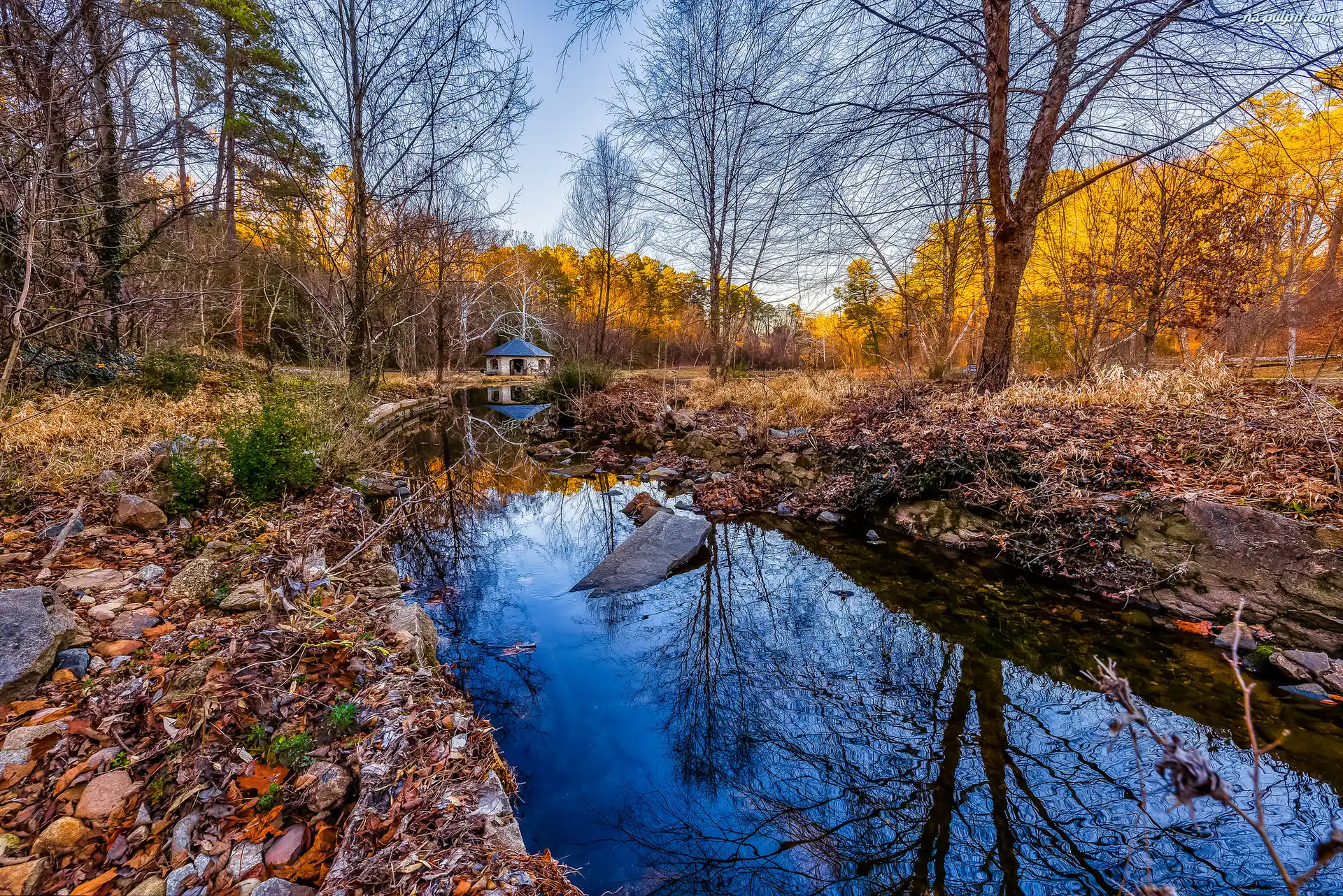 Trawy, Jesień, Domek, Pożółkłe, Rzeka, Drzewa