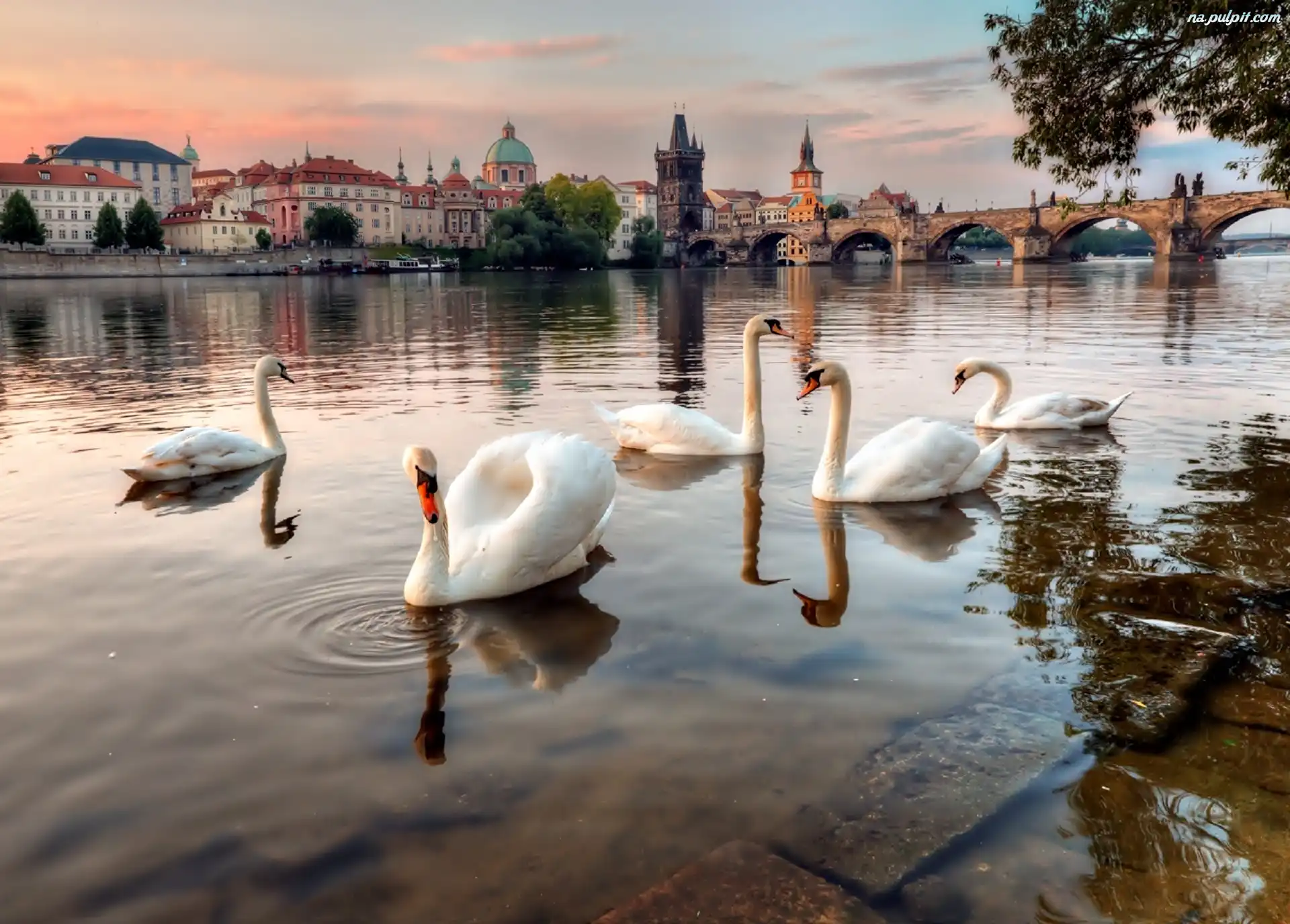 Praga, Rzeka, Łabędzie, Most