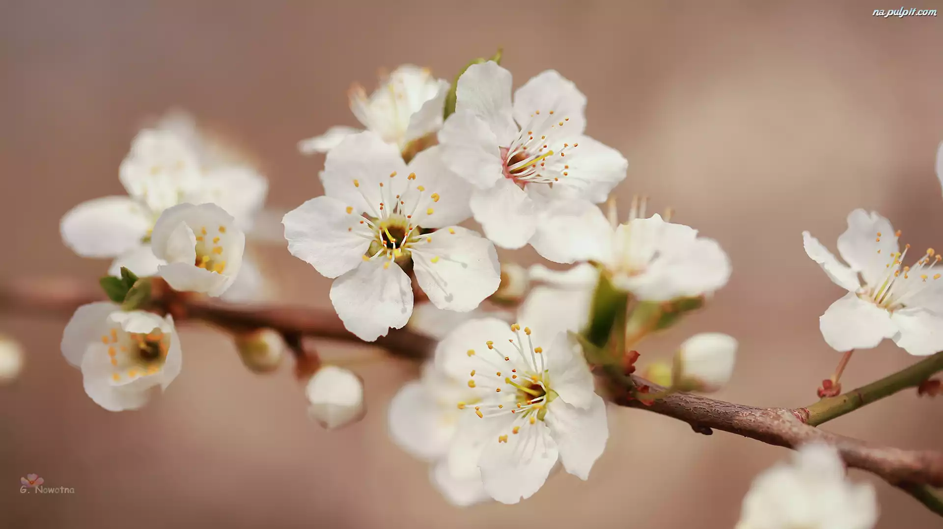 Gałązka, Białe, Żółte, Pręciki, Kwiaty, Drzewo owocowe Na Pulpit