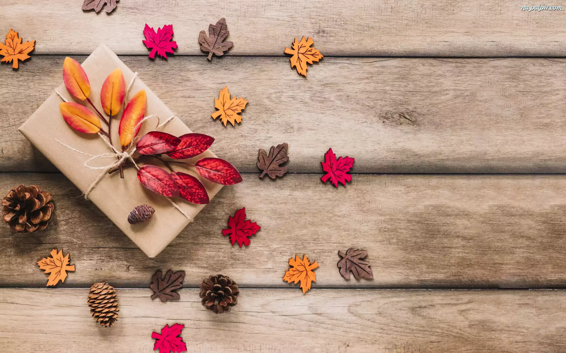 Prezent, Liście, Kolorowe, Szyszki Na Pulpit