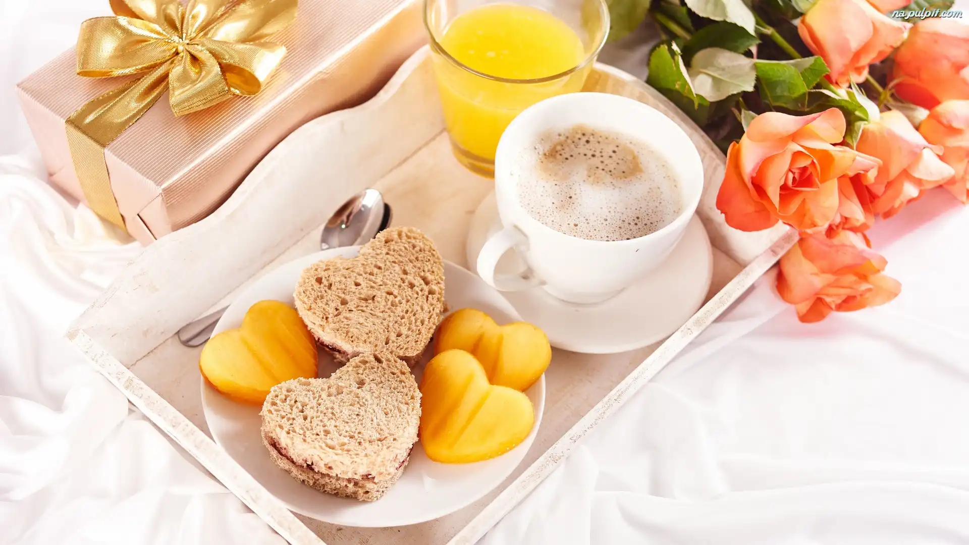 Chleb, Prezent, Róże, Serduszka, Walentynki, Bukiet, Kawa, Śniadanie Na Pulpit