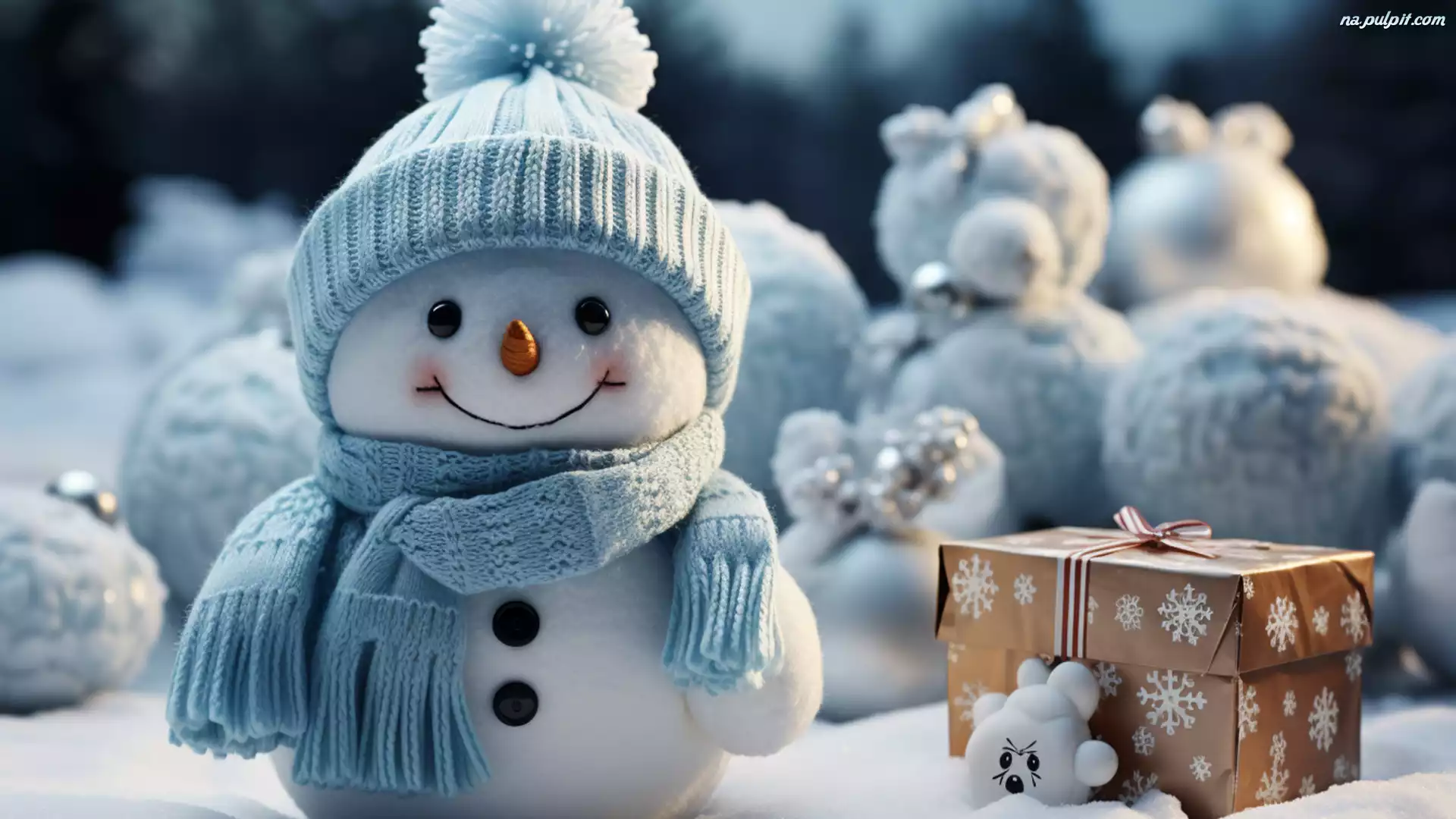 Bombki, Bałwan, Szalik, Prezent, Czapka, Śnieg