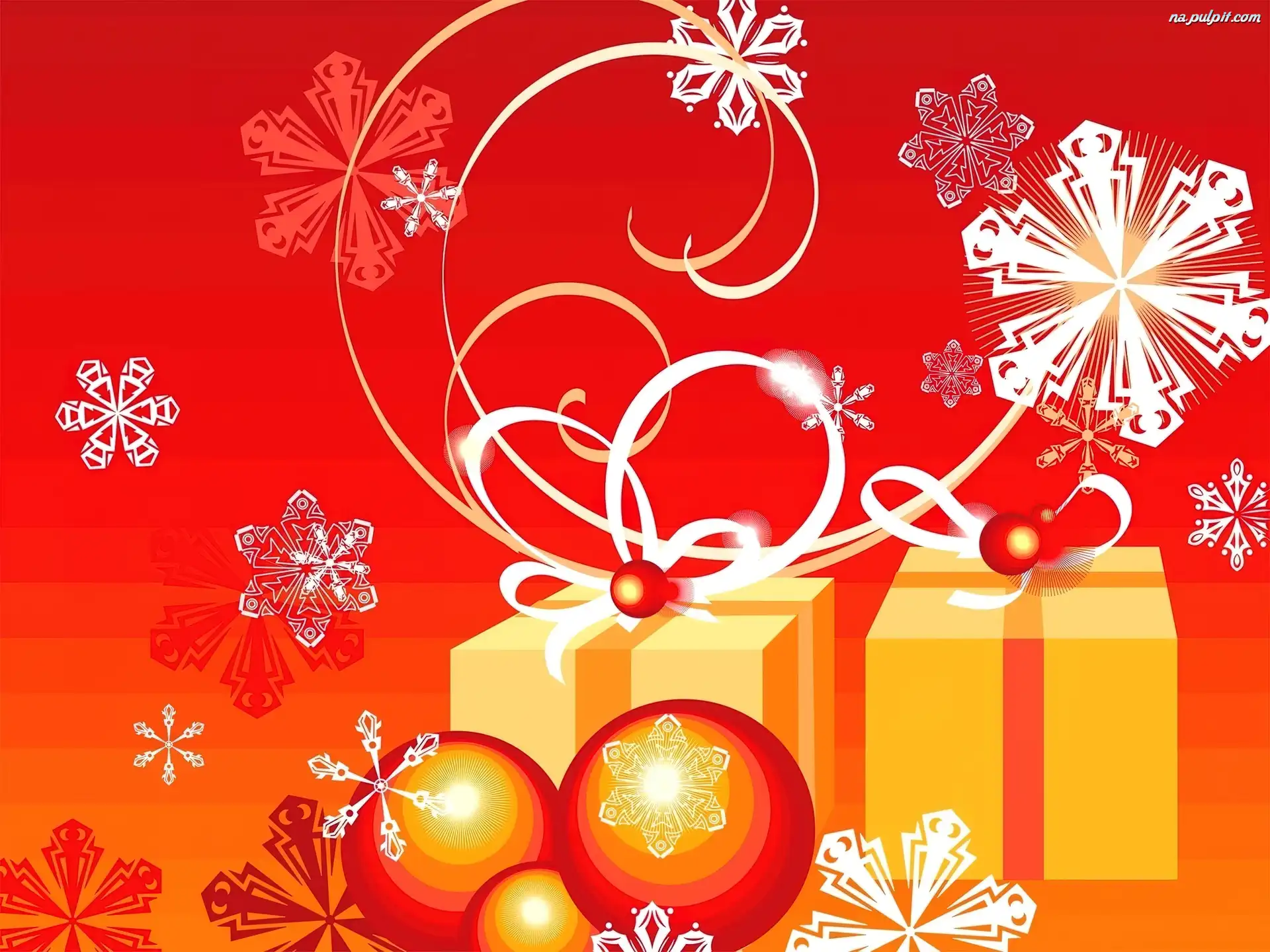 Prezenty, Śniegu, Wektorowe, Bombki, Dwa, Płatki Na Pulpit