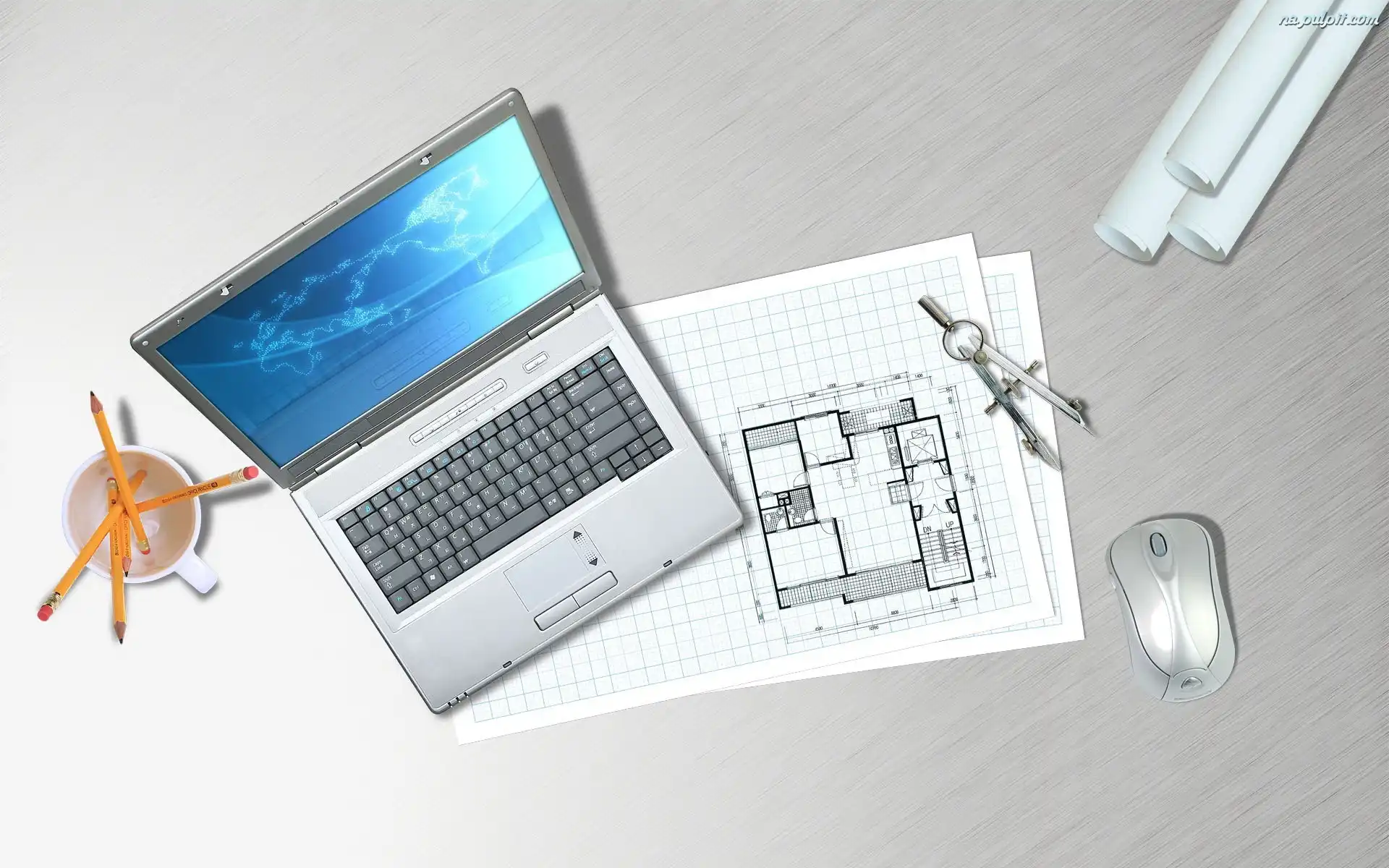 Projekt, Architekta, Stół, Notebook Na Pulpit