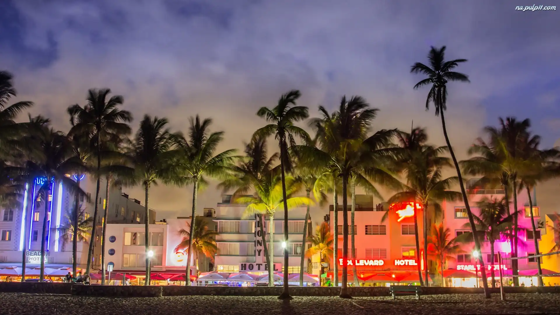 Promenada, Oświetlenie, Domy, Palmy Na Pulpit