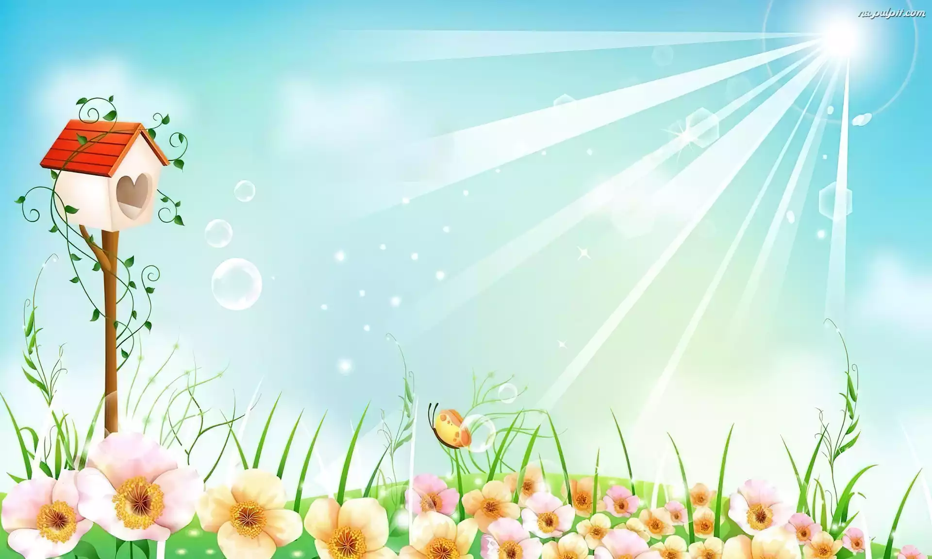 Promienie, Karmnik, Kwiaty, Łąka, Słońce Na Pulpit