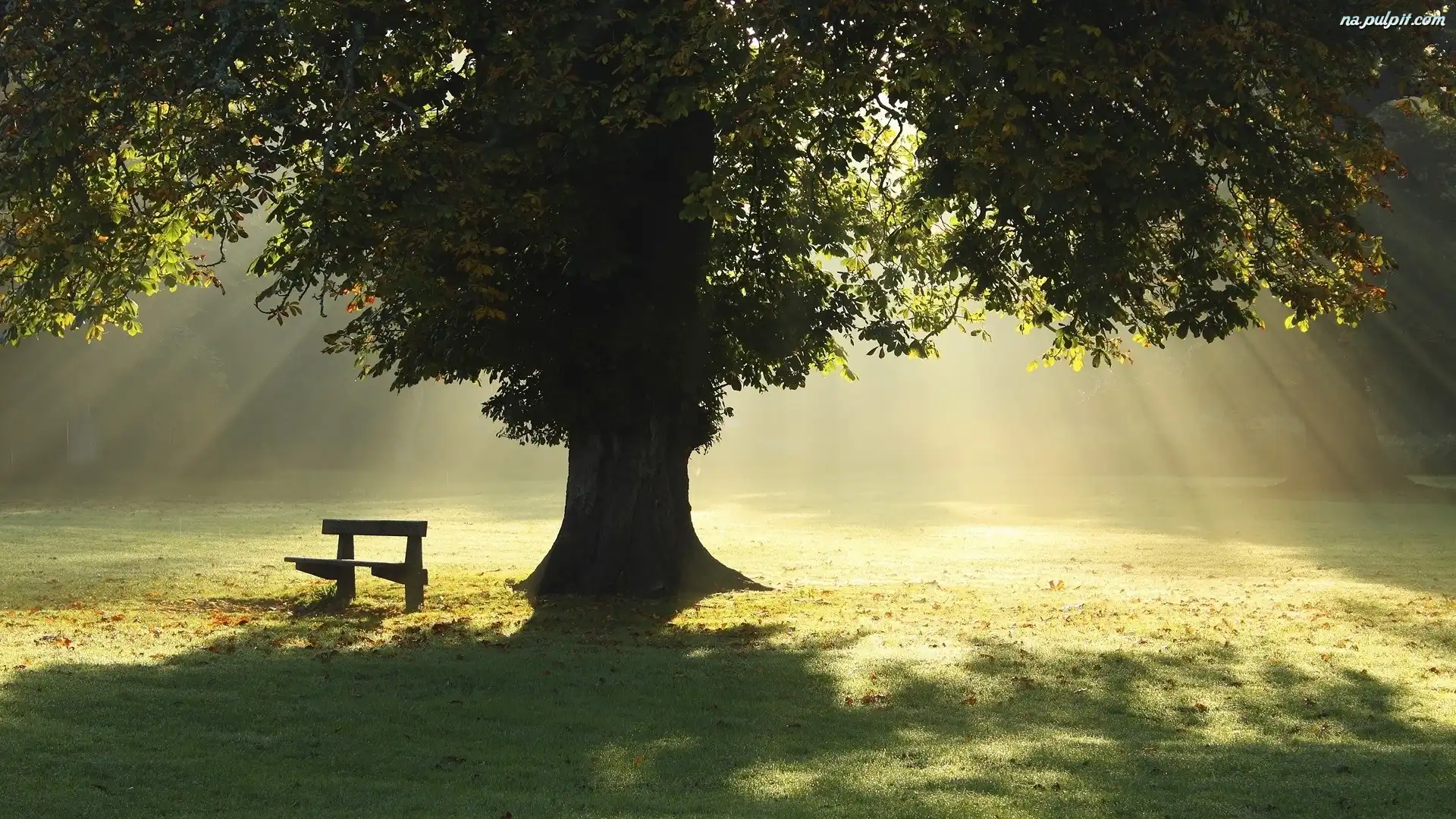 Promienie słońca, Ławka, Drzewo Na Pulpit