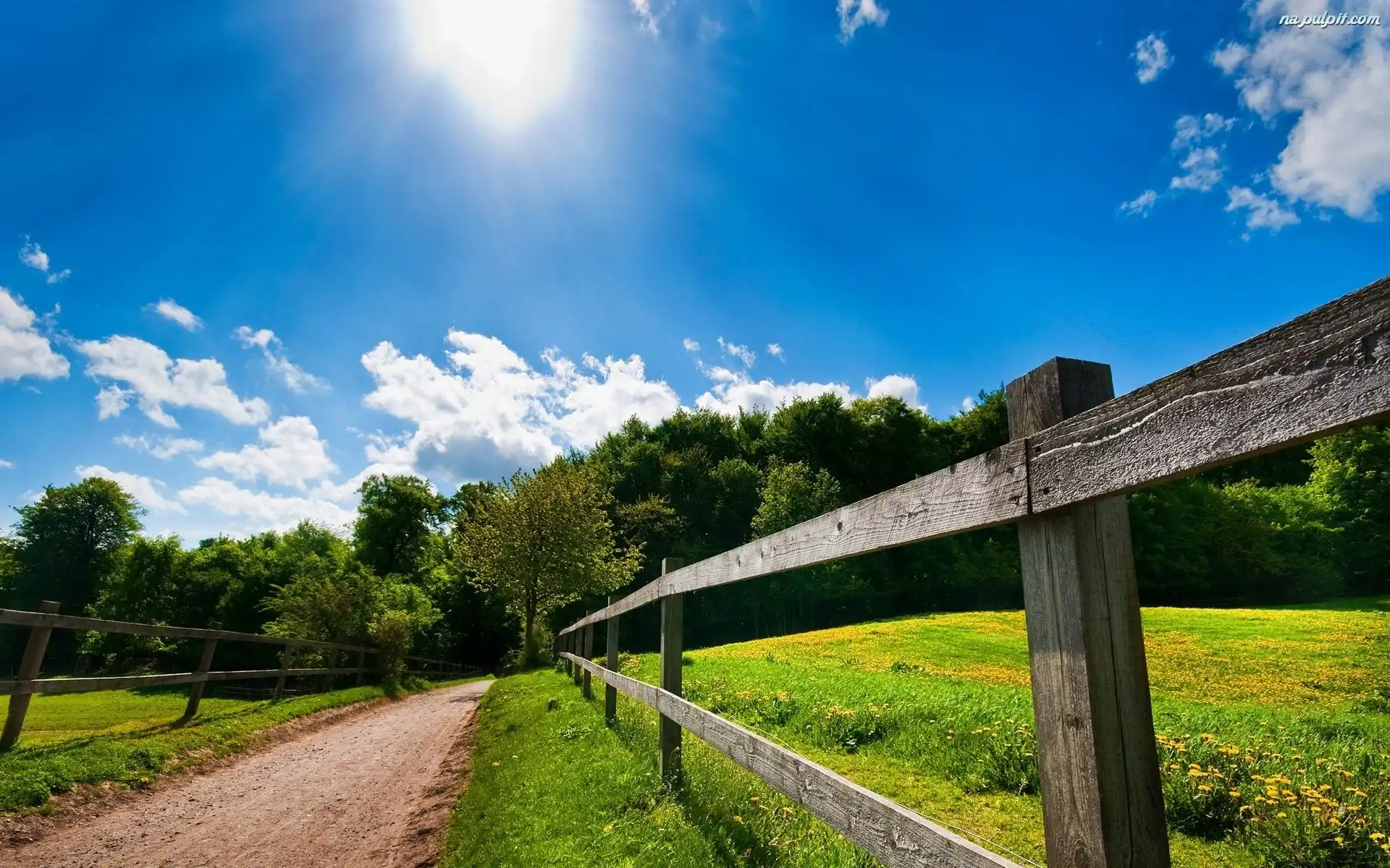 Promienie Słońca, Łąka, Droga, Ogrodzenie Na Pulpit