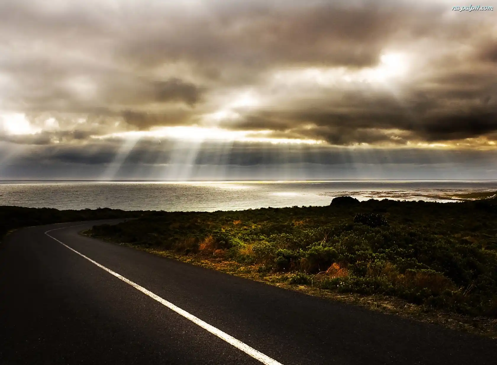 Promienie Słońca, Jezioro, Droga, Chmury Na Pulpit