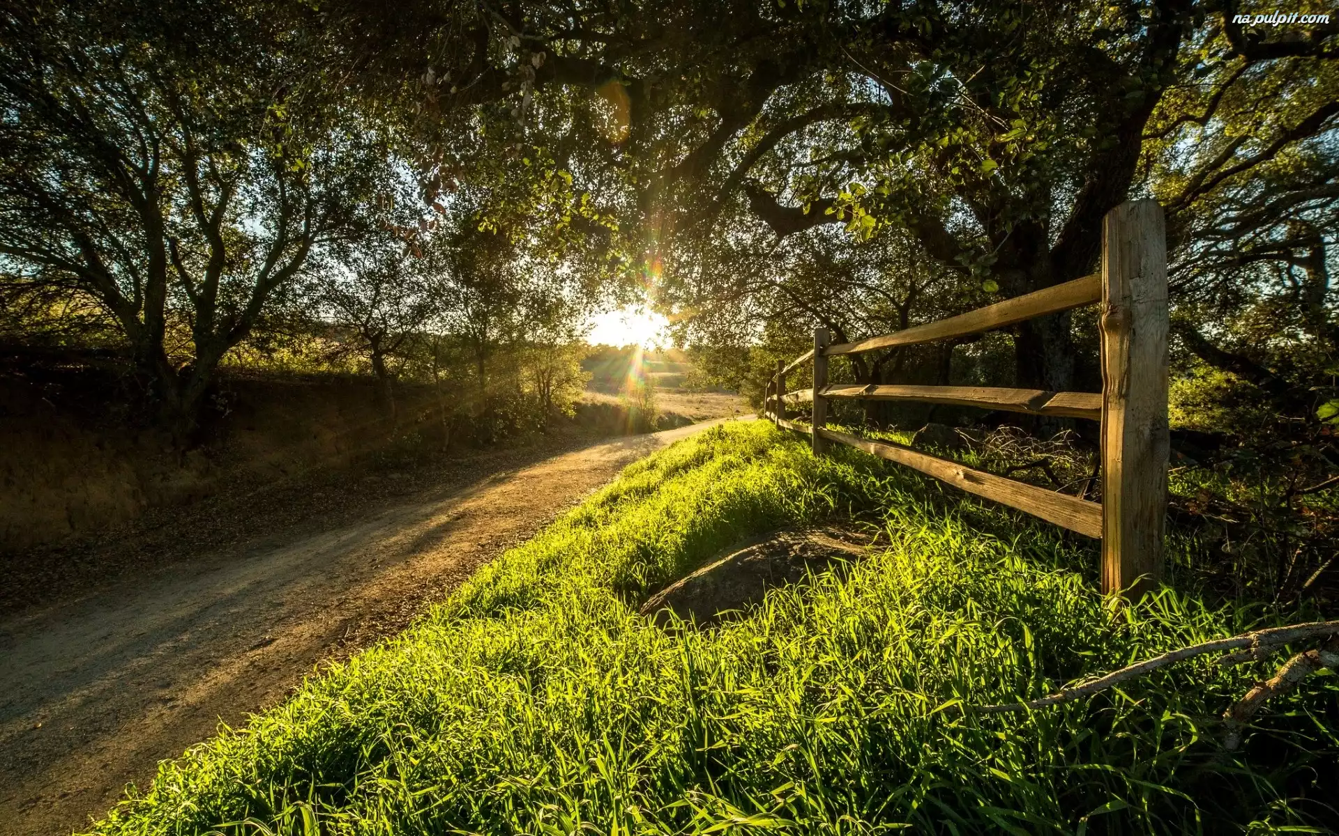 Promienie Słońca, Ogrodzenie, Wiejska Droga, Poranek Na Pulpit