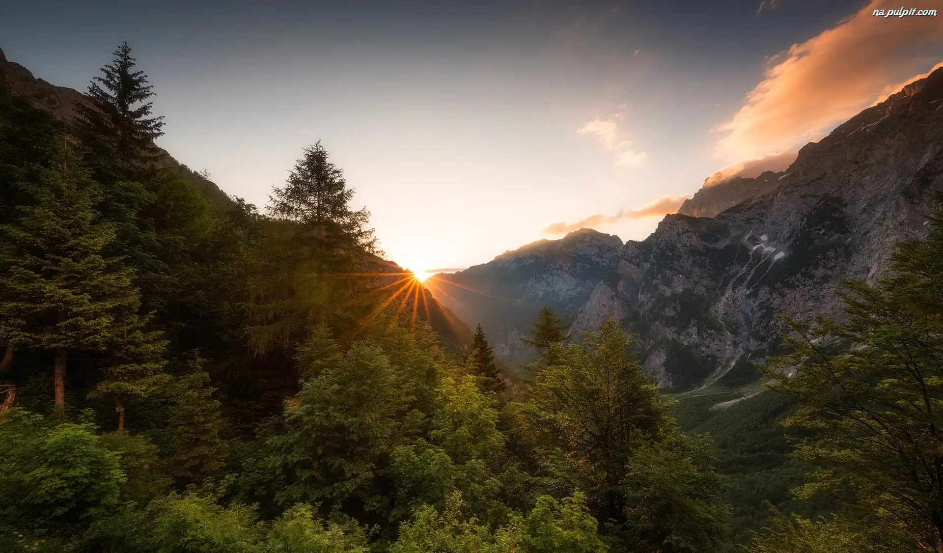 Promienie słońca, Dolina, Las, Góry, Poranek Na Pulpit