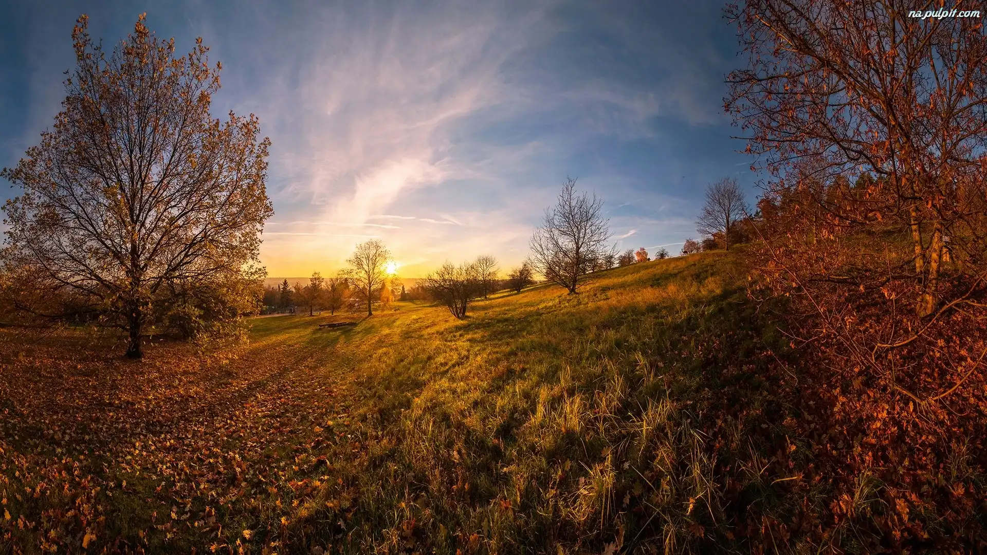 Promienie słońca, Drzewa, Jesień, Wzgórza Na Pulpit