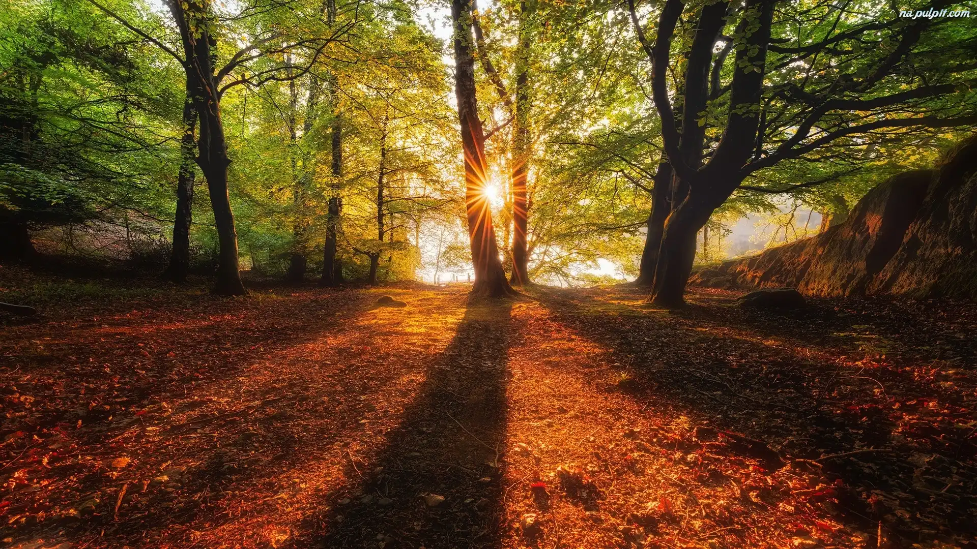 Promienie słońca, Las, Jesień, Drzewa Na Pulpit