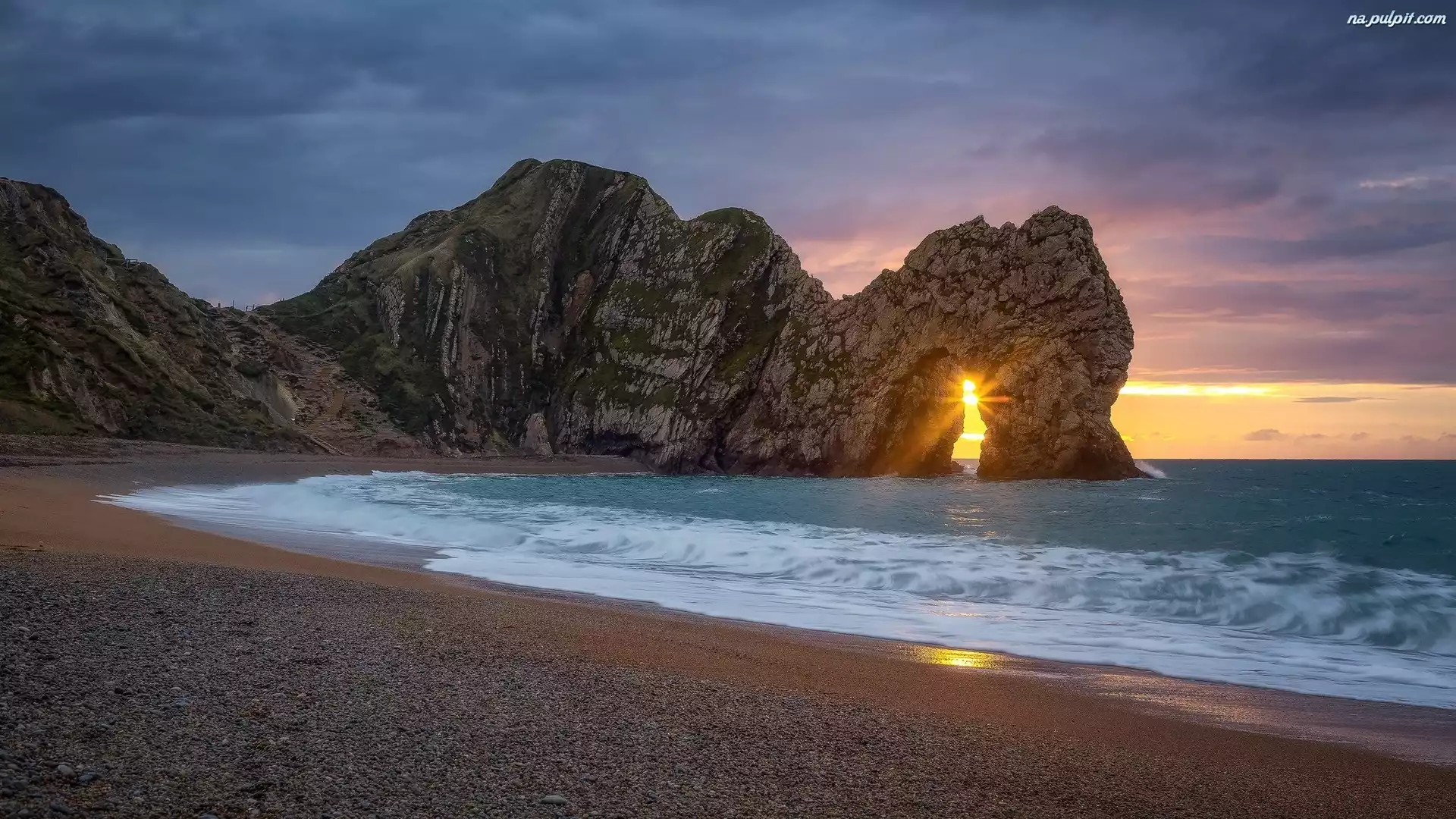Promienie słońca, Wybrzeże Jurajskie, Skały, Kanał La Manche, Łuk Durdle Door, Anglia, Morze Na Pulpit |
