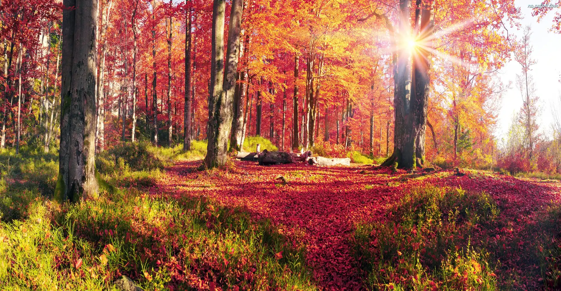 Promienie słońca, Las, Jesień Na Pulpit